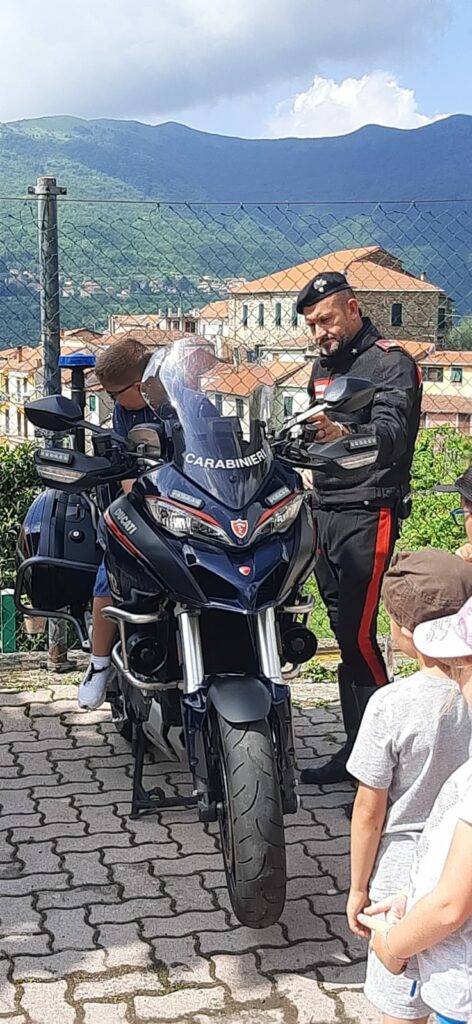 Nell’ambito delle attività del Mini Centro Estivo organizzato dall’Associazione “Trei Campanin”, in collaborazione con il comune di Aurigo, nella mattinata odierna sono intervenuti i militari della Sezione Radiomobile Carabinieri di Imperia, con il M.llo Aicardi, accompagnati dal M.llo Magg. Biagio Bongioanni, Comandante della Stazione di Borgomaro.
