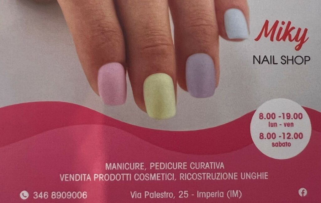 Miky Nail Shop fornisce servizi di manicure, ricostruzione unghie, pedicure e pedicure curativa