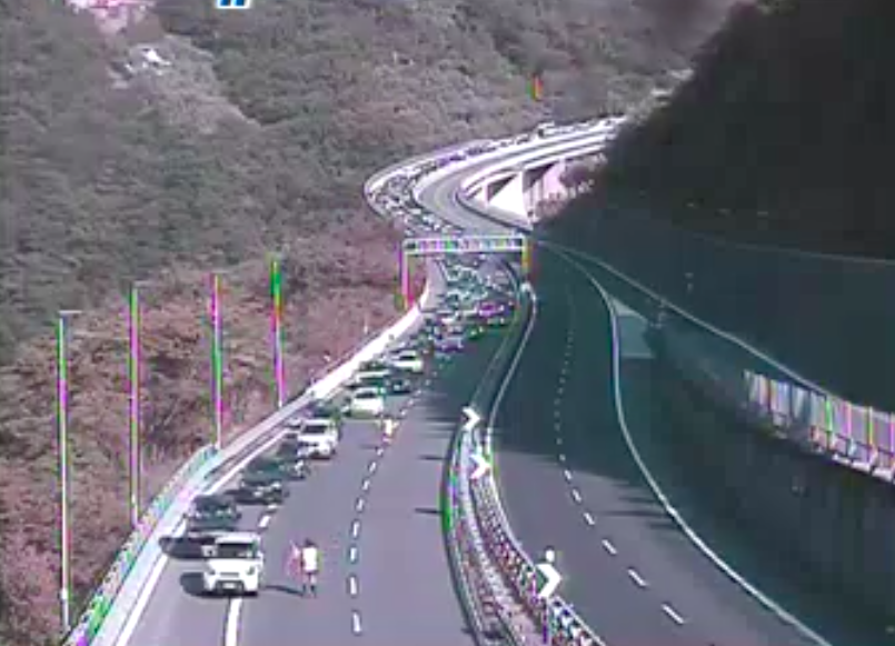 La protezione civile regionale sta intervenendo con la colonna mobile per assistere le persone in coda con rifornimenti di acqua dopo che, nella galleria Montegiugo, sulla A12, tra i caselli di Recco e Genova Nervi in direzione Genova, un pullman ha preso fuoco.