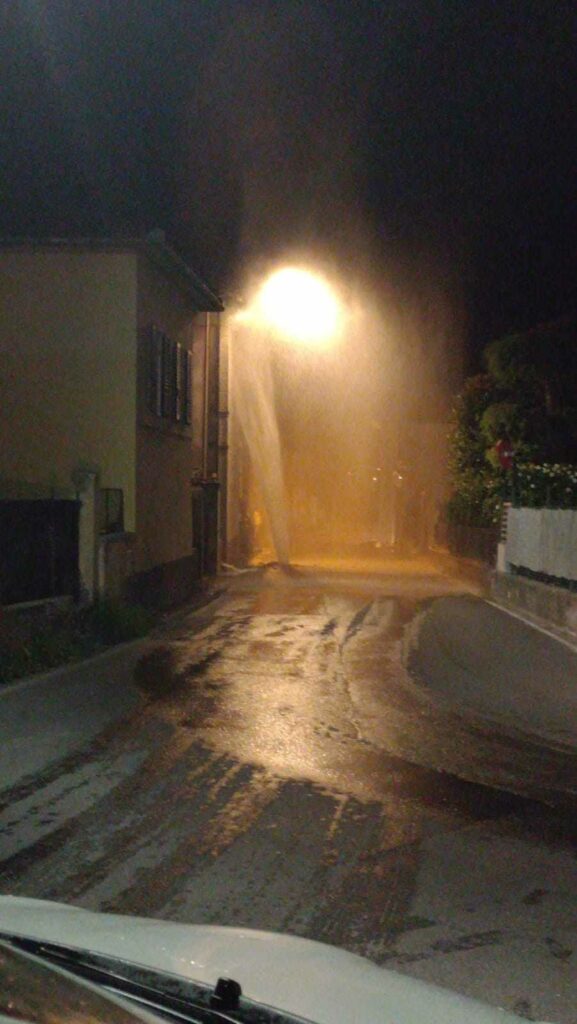 Esplode l’acquedotto in strada Ciosa, a Caramagna, frazione di Imperia, e si forma un enorme geyser con conseguenti allagamenti.