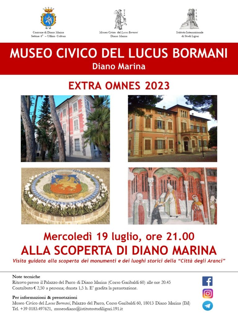 Mercoledì 19 luglio si svolgerà il secondo appuntamento serale estivo con “Extra Omnes! Alla scoperta di Diano Marina” alle ore 21.00 al MAMR.