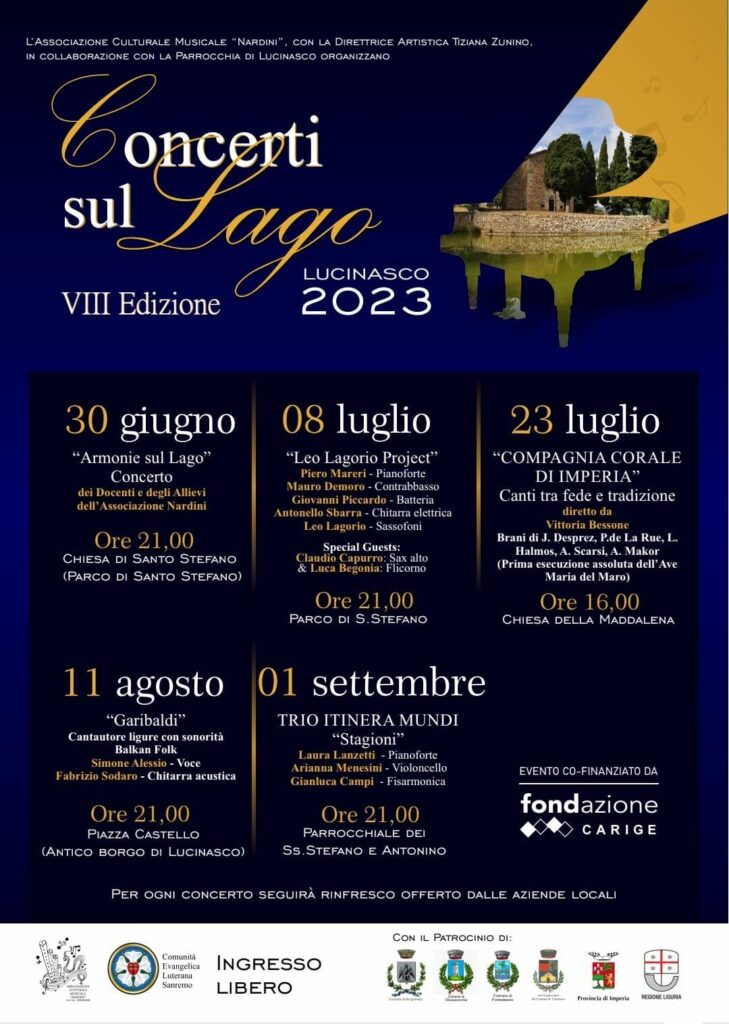 Infine, desidero ringraziare la Fondazione Carige, la Regione Liguria, la Comunità Evangelica Luterana di Sanremo, il Comune di Lucinasco e il Sindaco Dott. Marilena Abbo, il Parroco Don Stefano Mautone, la Pro Loco di Lucinasco, nella persona del Presidente Gianni Abbo, la Provincia di Imperia, il Comune di Chiusavecchia, il Comune di Borgomaro, il Comune di Pontedassio e tutte le realtà commerciali che, attraverso il proprio contributo, hanno sempre dato un supporto fattivo per il buon esito dell’iniziativa.