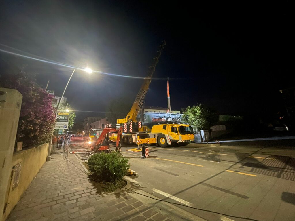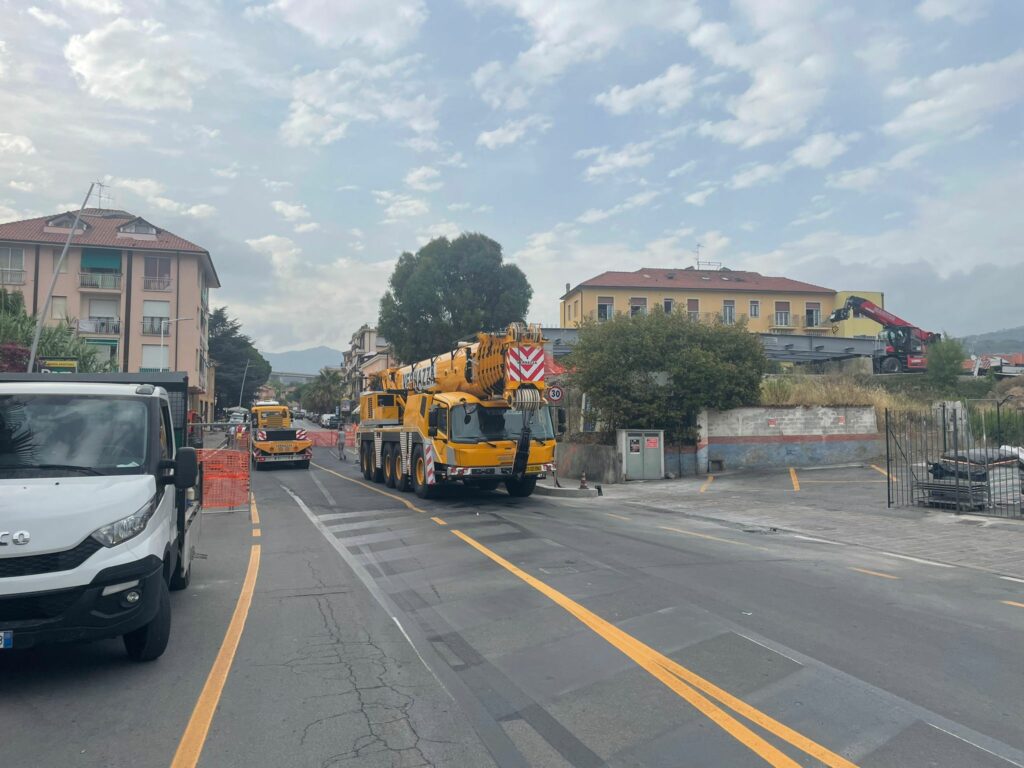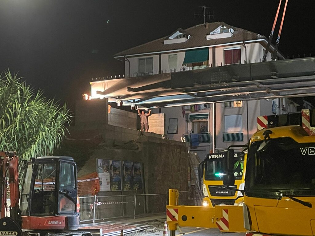 Hanno preso il via nella serata di ieri, lunedì 24 luglio a San Bartolomeo al Mare, i lavori per l’installazione del nuovo ponte su via Roma. L’intervento è stato realizzato mediante l’utilizzo di una grossa gru che ha sollevato l’impalcato e si è concluso poco dopo la mezzanotte.