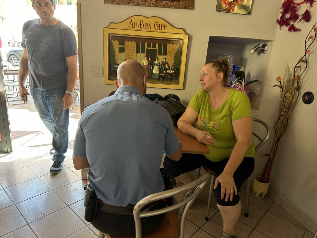 “Mentre ero di fuori – racconta Francesca Riccobono – sono entrata e ho visto che c’era questo signore la stava aggredendo sia verbalmente che fisicamente. Aveva rubato un salvadanaio delle mance, dopodiché gli abbiamo detto di fermarsi lì e ha messo le mani addosso anche a me e ha sputato addosso sia a me che ad un altro signore che era lì. Lo abbiamo bloccato e chiamato i carabinieri. Mi ha minacciato con un gesto e poi non lo abbiamo fatto uscire dalla porta fino a che non sono arrivati i carabinieri che lo hanno preso. Spaventata? No, arrabbiata sì. Ho sentito gridare la mia amica e mi è venuto un attimo di nervoso, gli trattiamo bene, vengono qua gli diamo l’acqua, la focaccia ed essere aggrediti così… Poi fartelo così davanti, cioè un salvadanaio, noi gli usiamo per dare da mangiare ai gattini, a volte gliene porto anche io quindi non trovo sia giusto essere aggrediti, ci ha messo le mani addosso”.