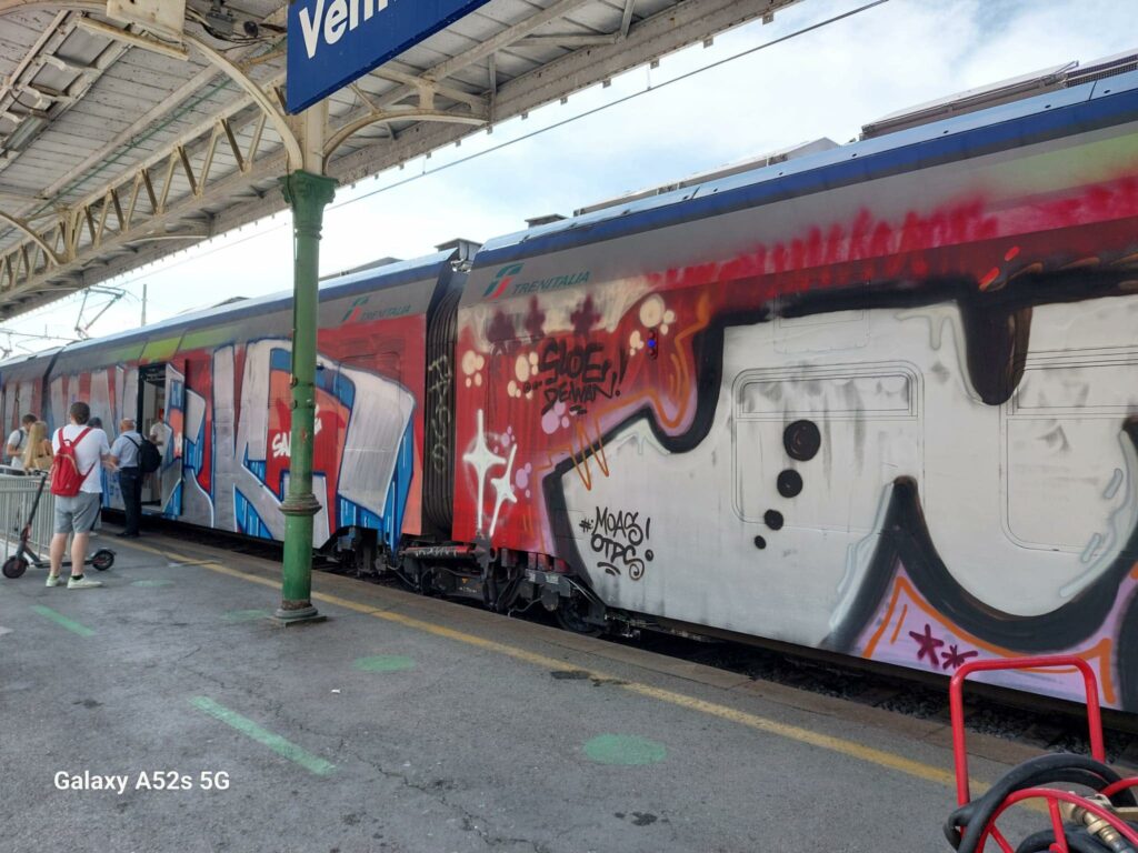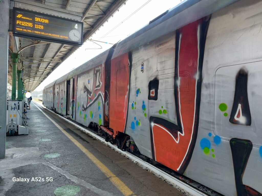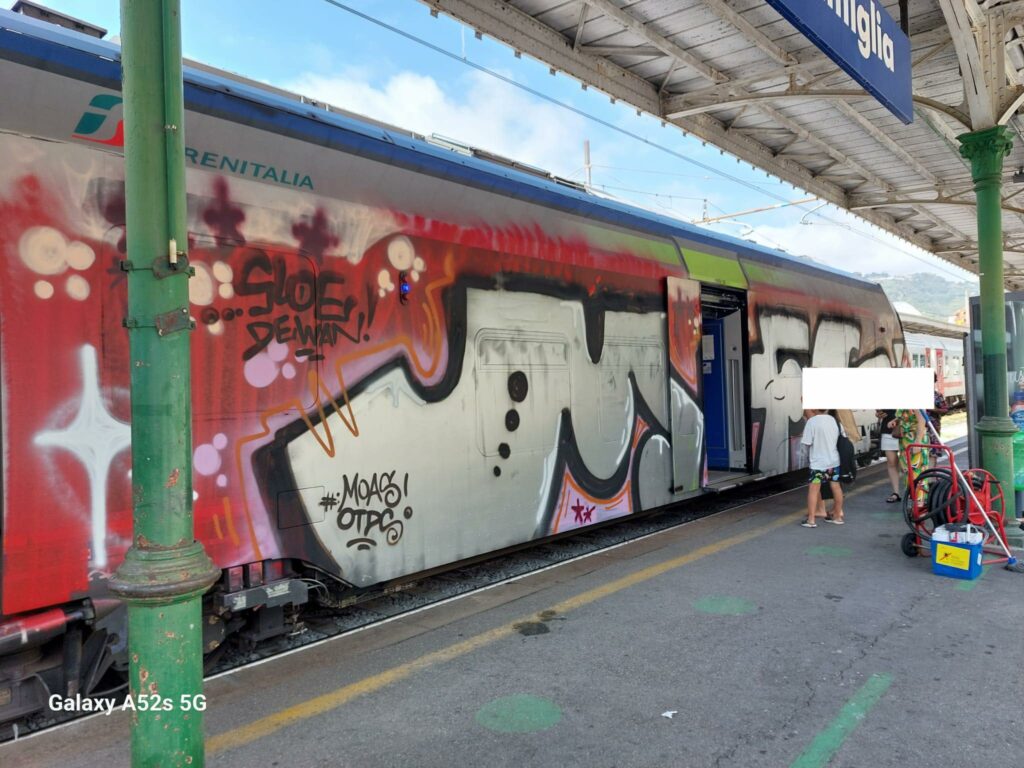 Writers all’assalto della stazione dei treni questa notte a Taggia. Ignoti hanno imbrattato un treno jazz del servizio regionale. Nonostante ciò il treno è rimasto operativo e ha svolto la tratta come prestabilito.