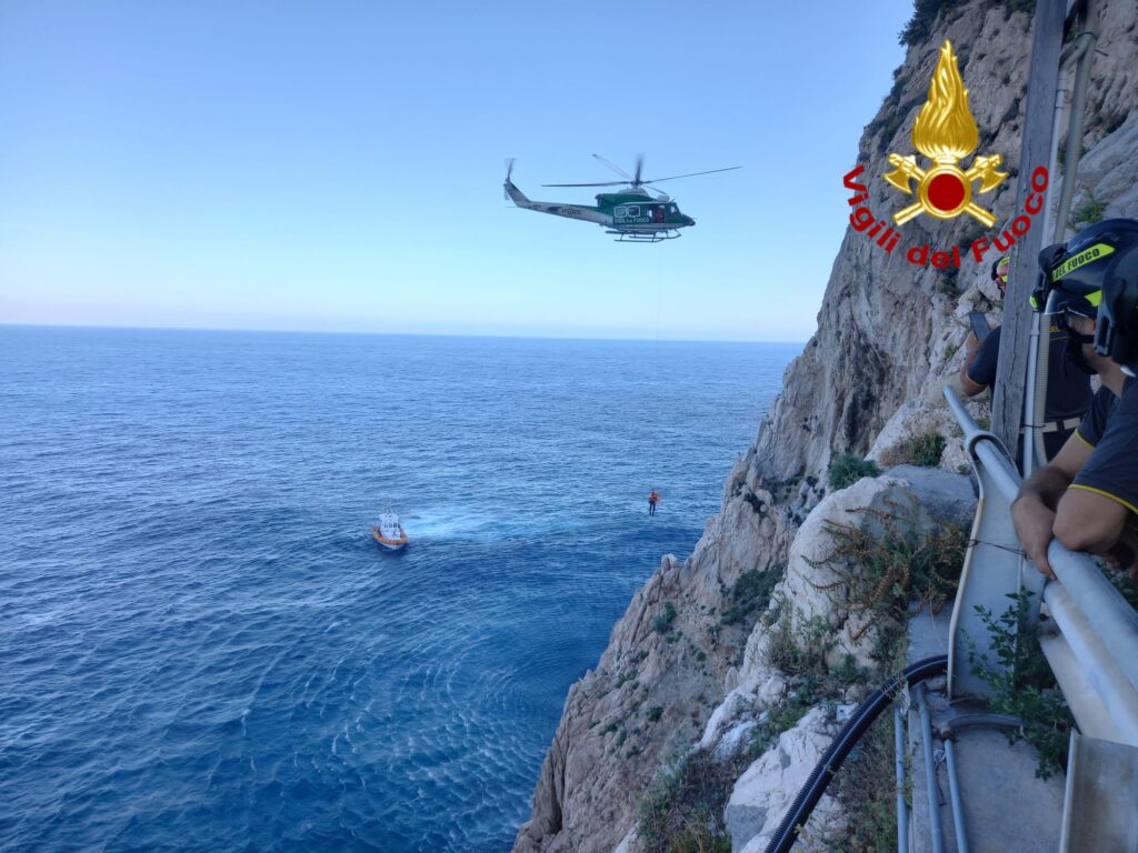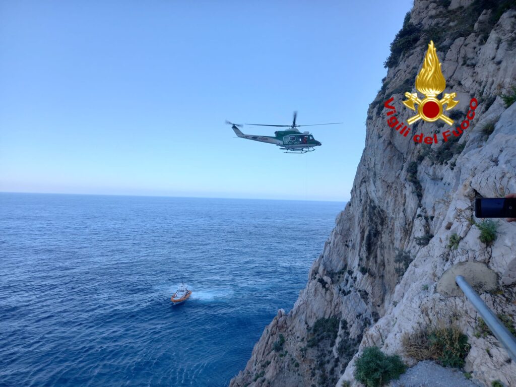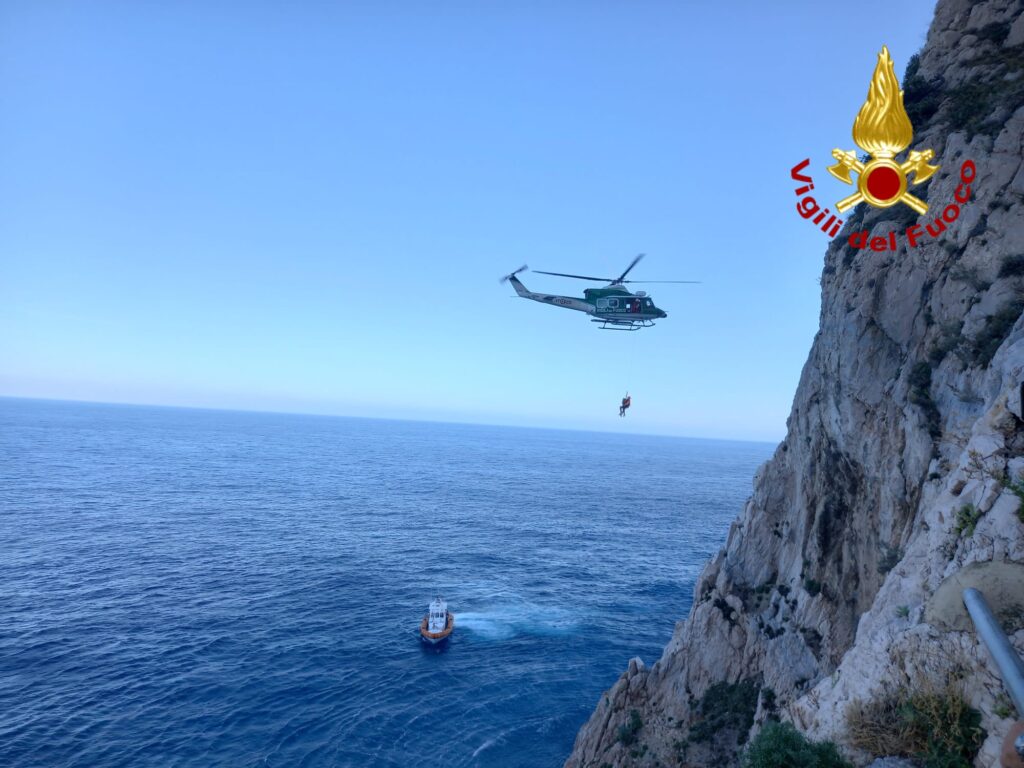 L’elicottero Drago VF, partito da Genova, ha cosi raggiunto la parete rocciosa dove erano bloccati. Un sommozzatore è stato verricellato per una trentina di metri fino a raggiungerli.
