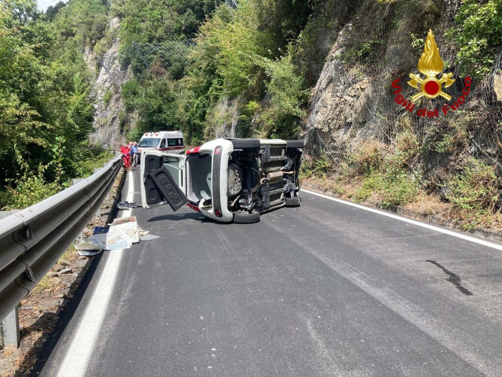 Secondo quanto ricostruito un uomo alla guida della sua Fiat Panda, per cause ancora in fase di accertamento, poco dopo Agaggio, avrebbe perso il controllo del mezzo, ribaltandosi. Si tratta del secondo incidente nel giro di poche ore sulla stessa strada, dopo il ciclista caduto a Molini di Triora.