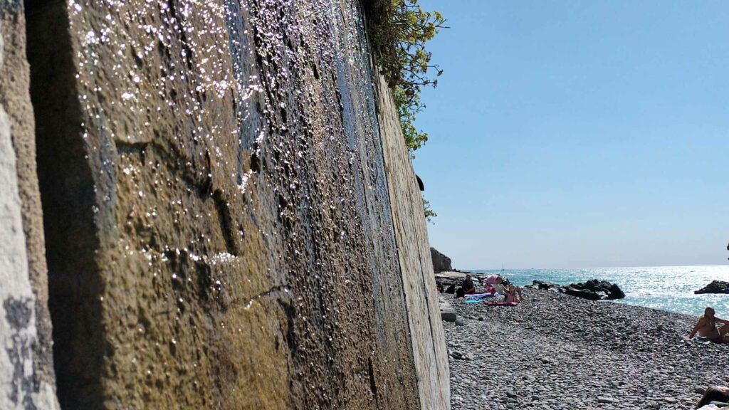“Alla Galeazza, proprio sulla spiaggia, scende una bella cascata, in corrispondenza della nuova rotonda all’inizio dell’incompiuta: sicuramente non è una nuova sorgente, ma probabilmente una perdita sul tubo dell’acquedotto del Roja che dovrebbe alimentare il dianese ed oltre.