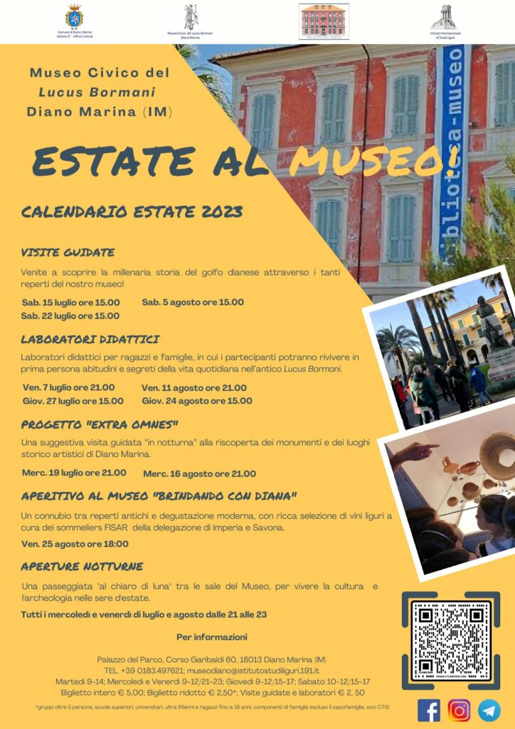 Proseguono per tutto il mese di agosto le iniziative promosse per l’estate 2023 dal Museo Civico di Diano Marina.