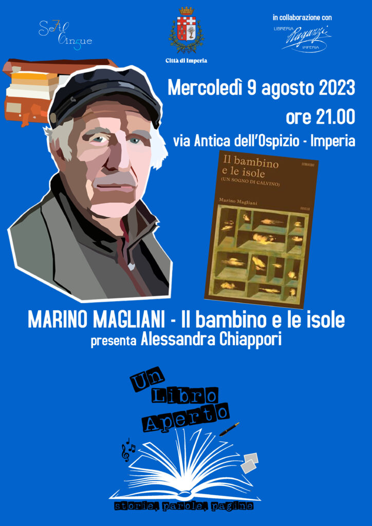 La rassegna culturale “Un libro aperto” prosegue mercoledì 9 agosto alle ore 21, sempre in Via Antica dell’Ospizio, con la presentazione del Libro “Il bambino e le isole (un sogno di Calvino)” dell’autore ligure Marino Magliani.