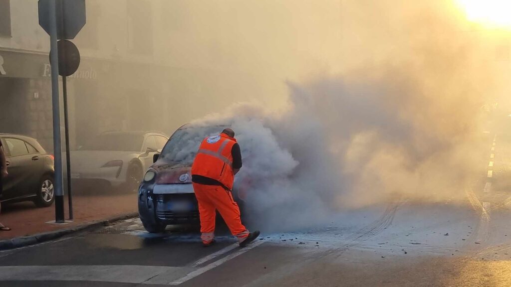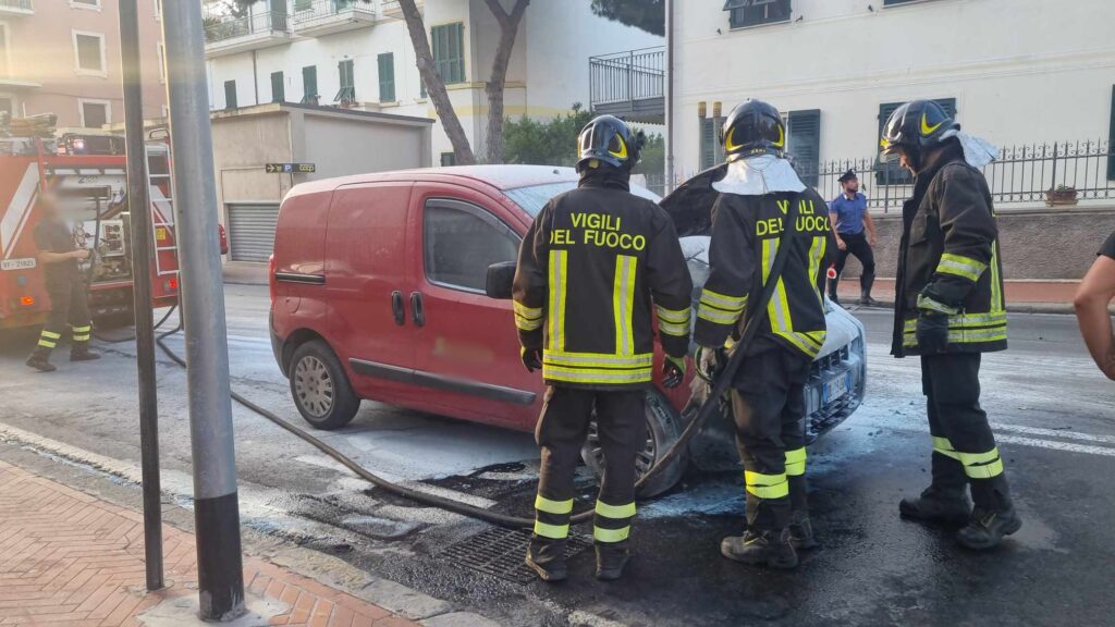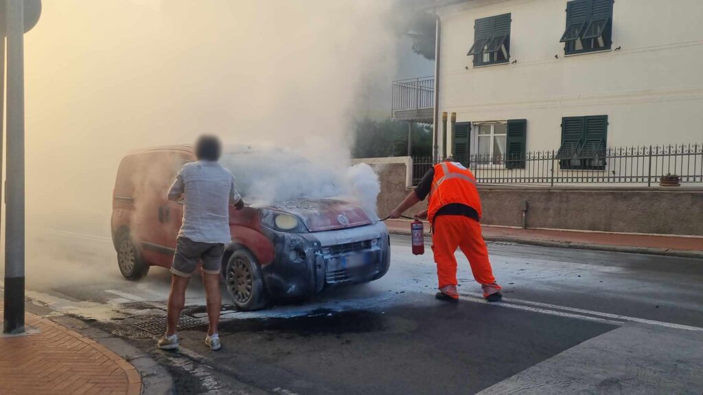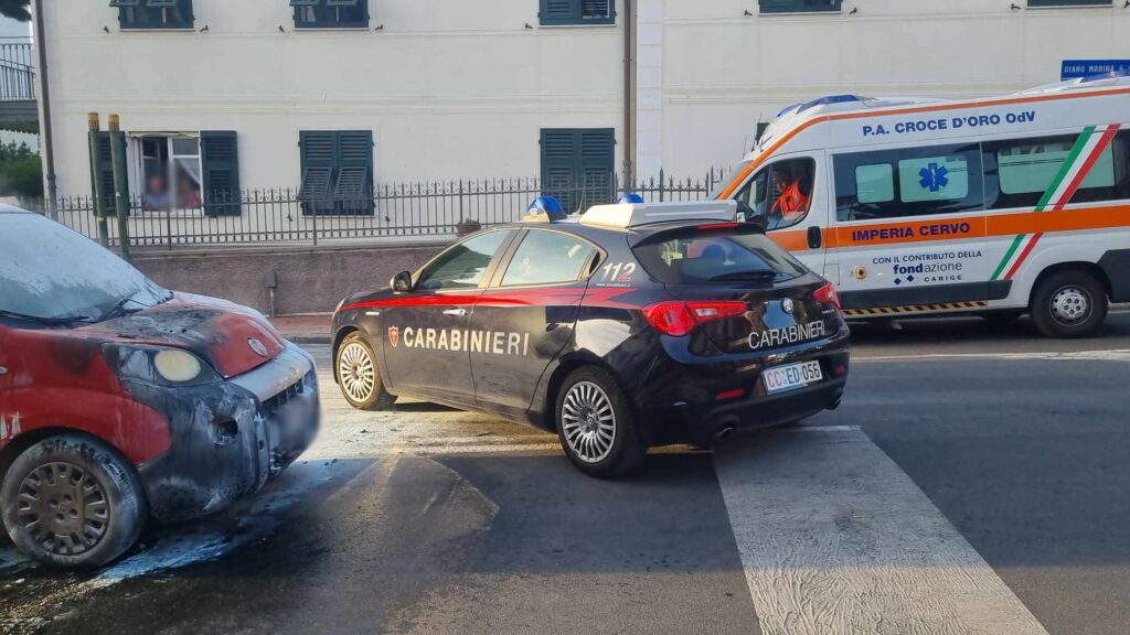Provvidenziale l’intervento dell’equipaggio della Croce d’Oro, di passaggio, che ha prontamente utilizzato l’estintore per spegnere le fiamme. Nel frattempo sono giunti sul posto i Vigili del Fuoco del Comando di Imperia che hanno provveduto a mettere in sicurezza l’auto.