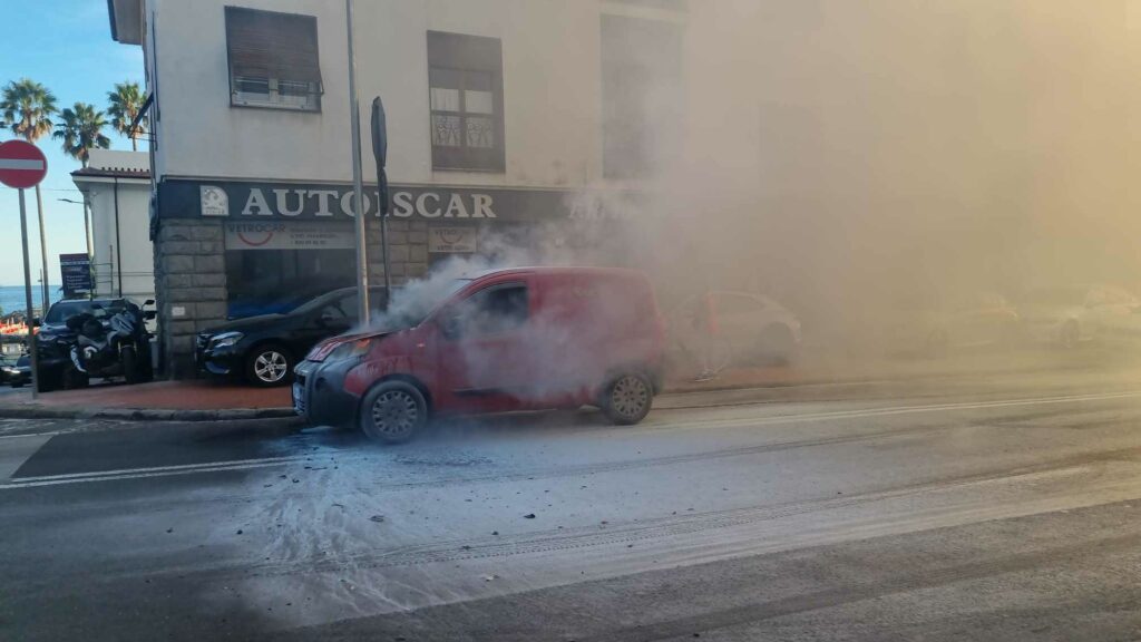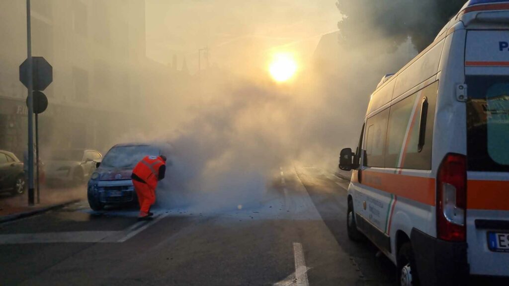 Secondo quanto riferito dal conducente del furgone, una volta giunto allo stop, dal cofano dell’auto è iniziato a fuoriuscire del fumo. L’uomo è così sceso per sicurezza e poco dopo il mezzo ha preso fuoco.
