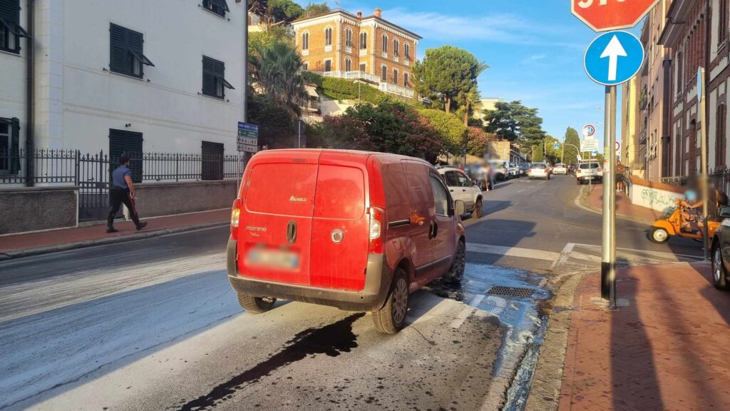 Imperia: furgone prende fuoco in via Serrati
