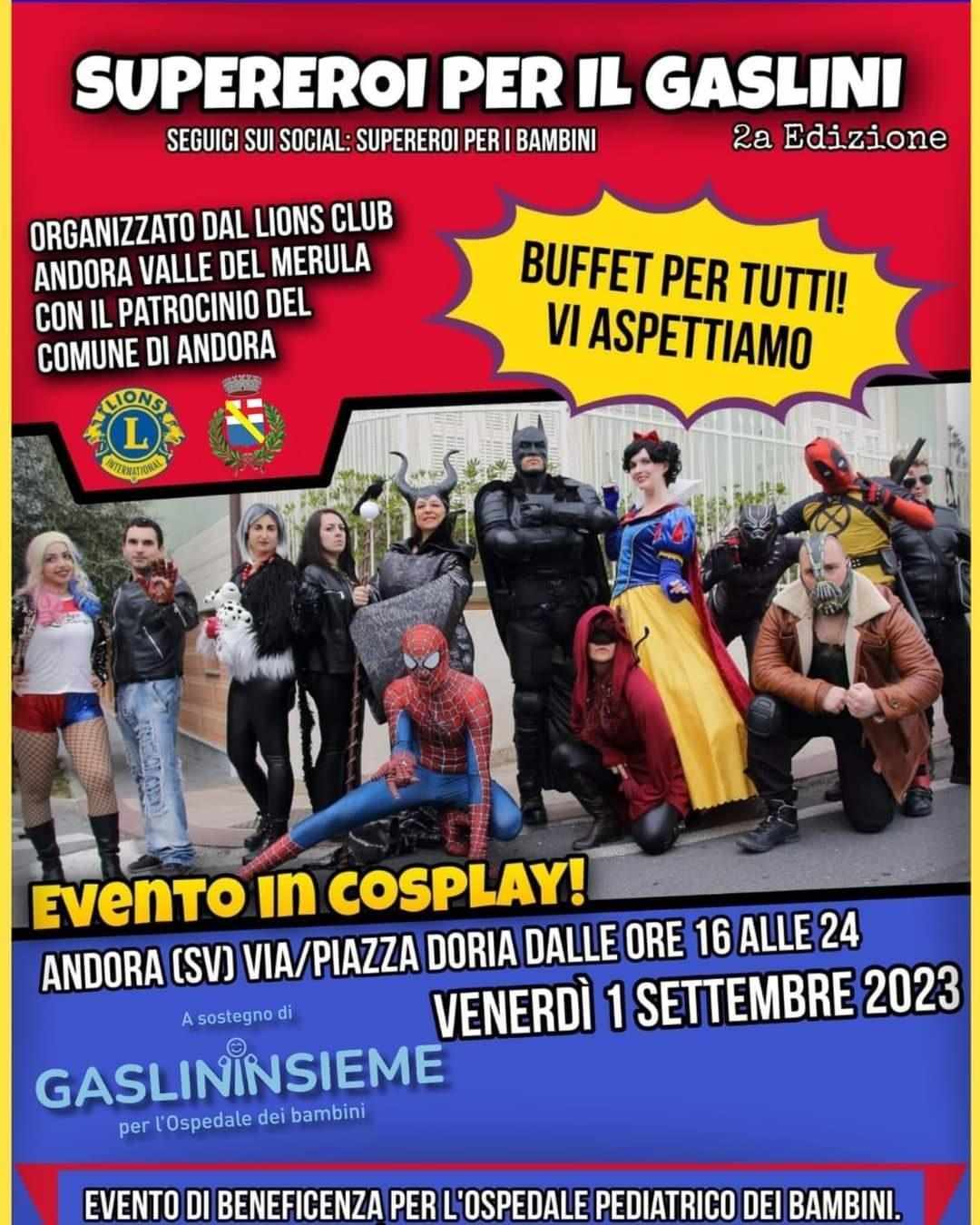 Venerdì 1 settembre grande festa ad Andora per la seconda edizione dei “Supereroi per il Gaslini“, evento di beneficenza a favore dell’ospedale pediatria Istituto Giannina Gaslini.