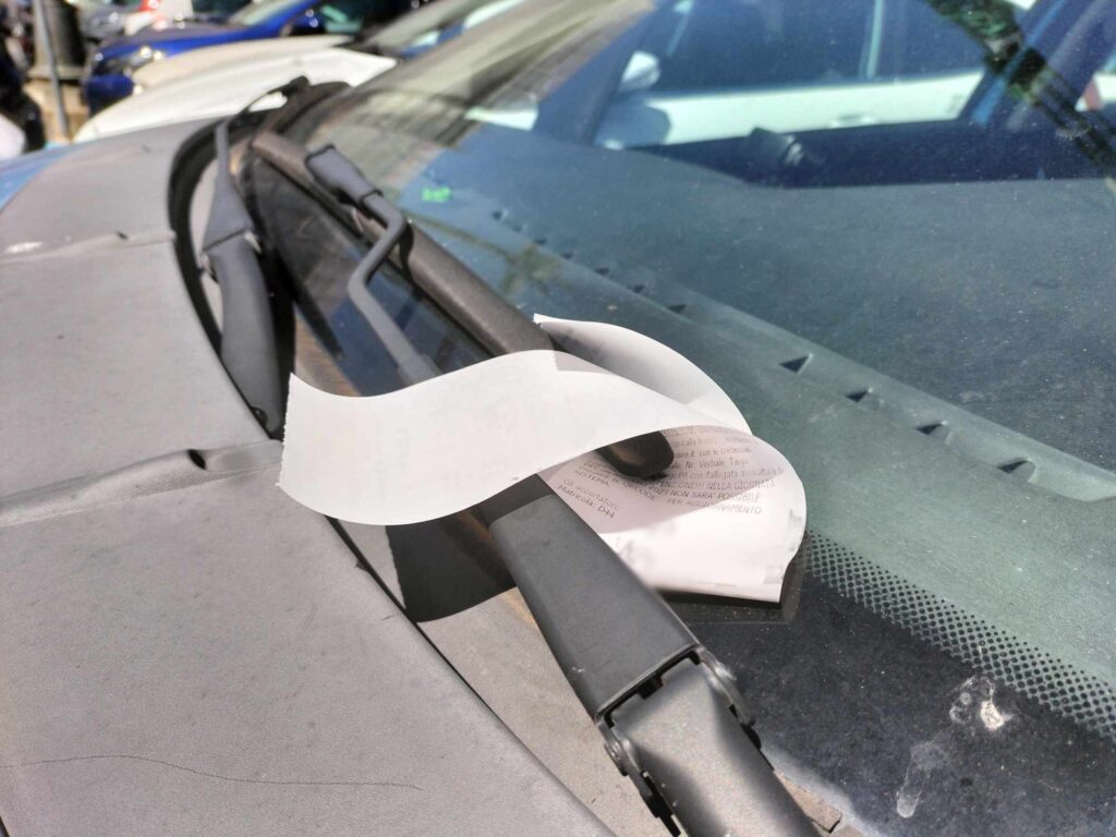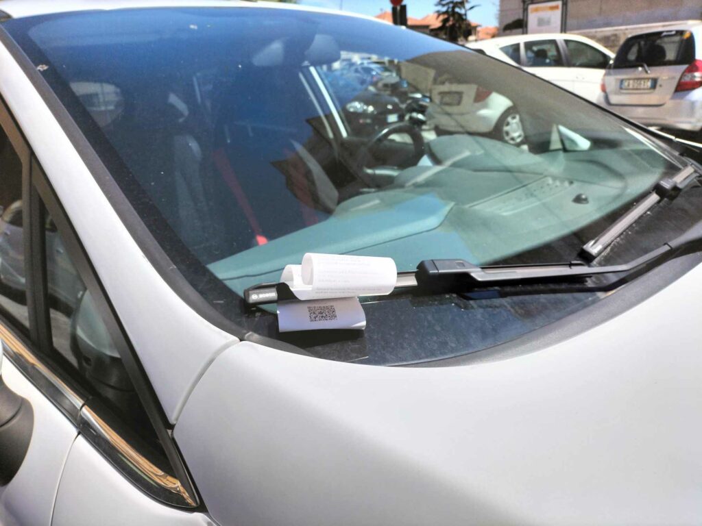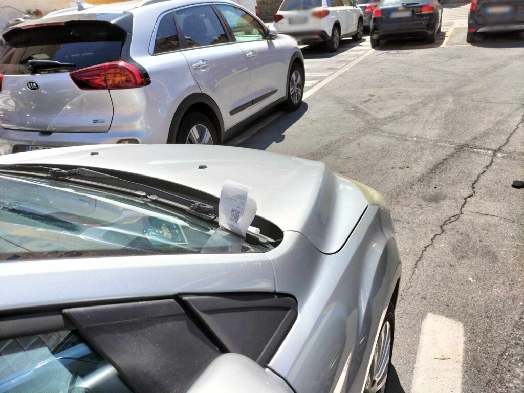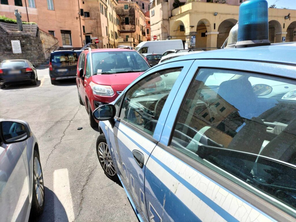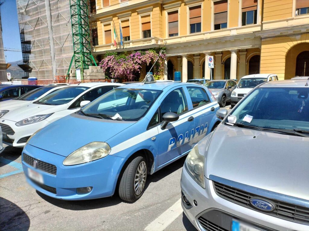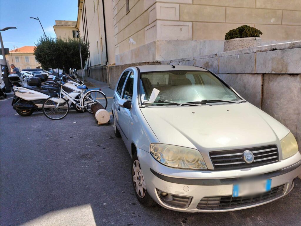 Non è stata “risparmiata” nemmeno l’auto della Polizia di Stato, parcheggiata poco distante dalla Questura, accanto a un posteggio dalle strisce blu.