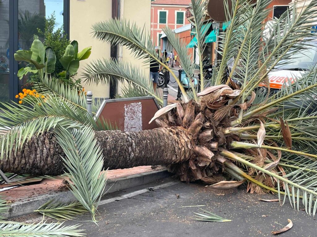 Bordighera: palma crolla in piazza Ruffini