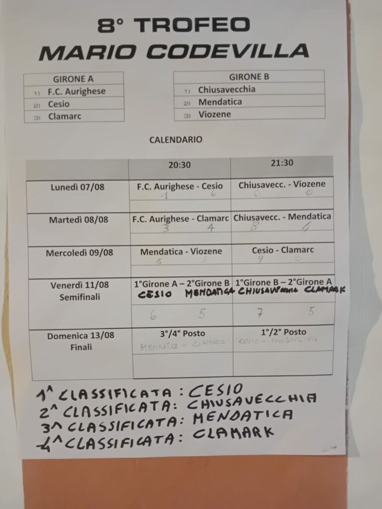 Successo per l’ottava edizione del torneo di calcio estivo ad Aurigo, in onore di Mario Codevilla. I fondi raccolti sono stati devoluti alla Caritas vicariale della Valle Impero, con sede a Pontedassio, che assiste le persone in difficoltà del territorio di competenza.