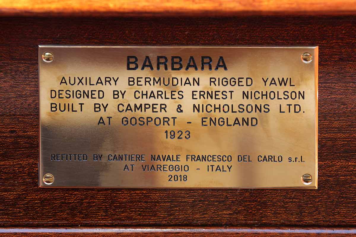 Costruita al cantiere Camper and Nicholsons a Gosport, Inghilterra, progetto n. 318, Barbara, ha rivoluzionato il concetto di navigazione permettendo un equipaggio ridotto, grazie all’innovativo armo con vele triangolari e il secondo piccolo albero dietro al timone a barra. L’ultimo restauro è durato quasi vent’anni, con accurate ricerche filologiche, il fortunato ritrovamento dei disegni originali al Museo Marittimo di Londra e diverse fotografie dell’epoca negli archivi dei famosi fotografi Beken of Cowes.