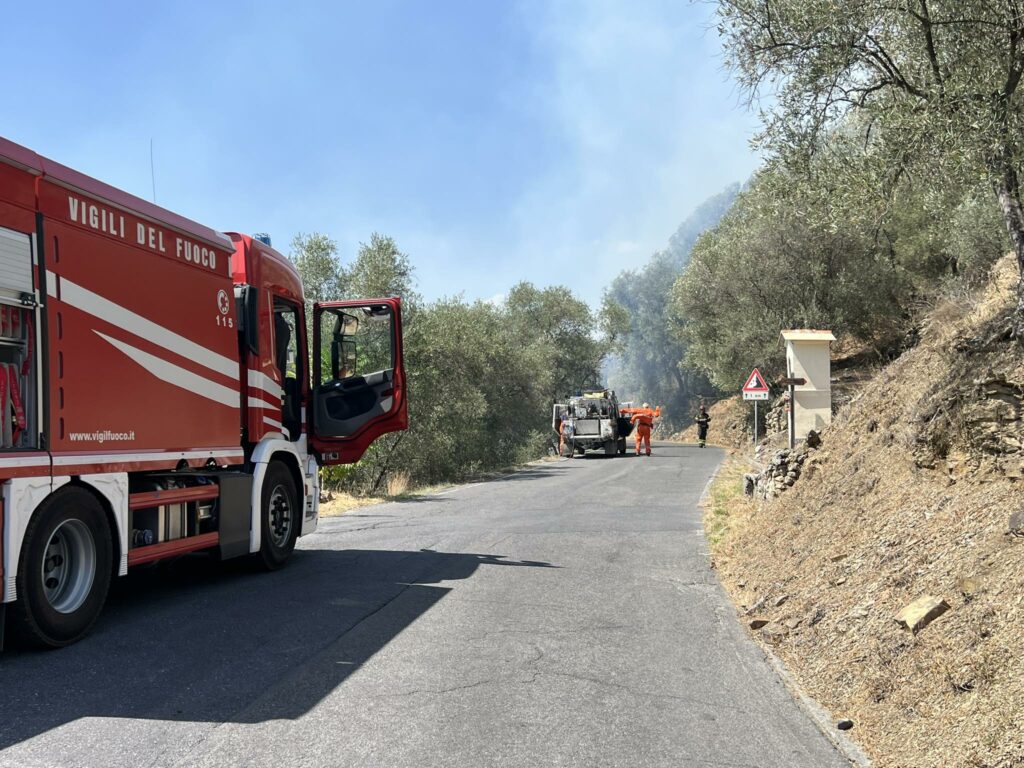 Mobilitazione dei Vigili del Fuoco nella giornata di oggi, 18 agosto, a Gazzelli, per un grosso incendio di sterpaglie. Il rogo si è verificato in un terreno incolto in campagna, le fiamme hanno rapidamente superato la Strada Provinciale che porta a Chiusanico, che è stata temporaneamente chiusa al traffico.