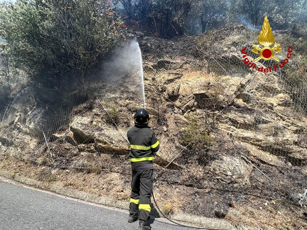 Vista la zona impervia, in volo si è alzato anche l’elicottero regionale. Il rogo, alimentato anche dal caldo torrido che ha reso molto secco il terreno e dal vento, è stato fortunatamente circoscritto evitando che le fiamme potessero avvicinarsi alle abitazioni sovrastanti.