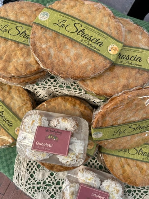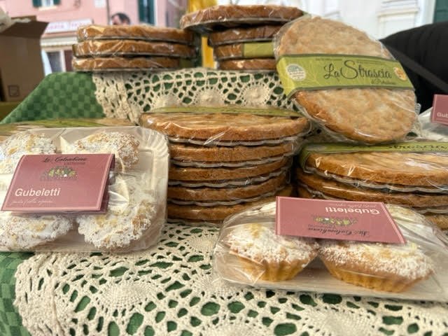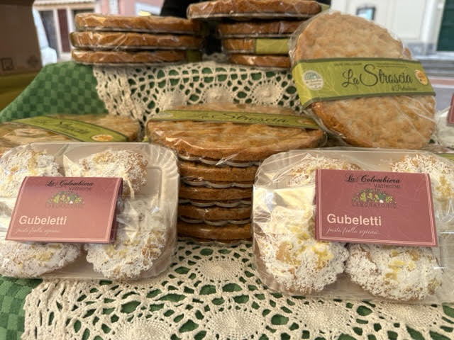 Uno degli stand imperdibili di Olioliva è senza dubbia quello de “La Colombiera di Barbara Vatteone”, il laboratorio di dolcezze liguri made in Pietrabruna (IM). Lo stand situato in piazza San Giovanni a Oneglia offre l’assaggio della tipica “Stroscia D.O.P” prodotta con l’olio delle val San Lorenzo e gli squisiti “Gubeletti”.
