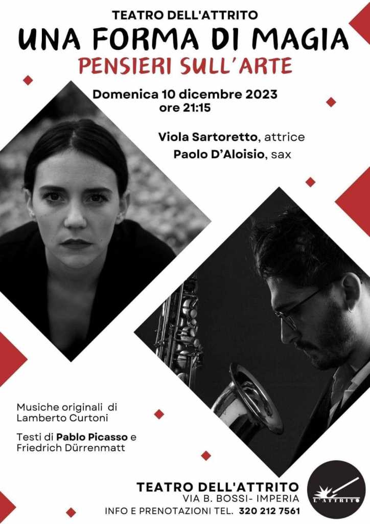Appuntamento domenica 10 dicembre, alle ore 21.15, presso il Teatro dell’Attrito di Imperia, in via B. Bossi con l’esibizione “Una forma di magia – Pensieri sull’Arte.