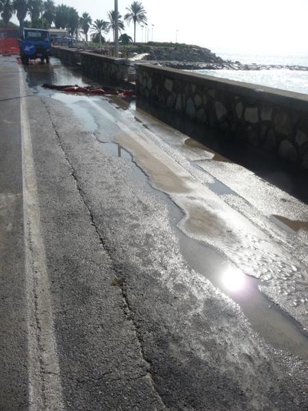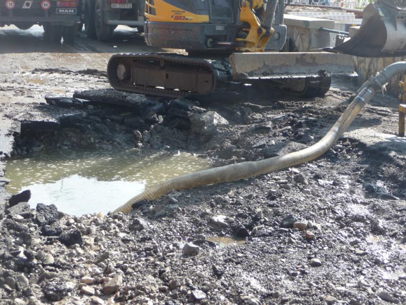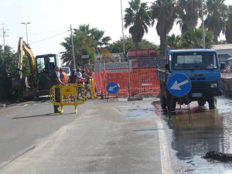 Arrivati sul posto le grandi dimensioni del danno sono subito evidenti, l’acqua è invaso mezza corsia della carreggiata e, con una pompa, gli operai stanno tentando di svuotare il tubo prima che l’acqua danneggi anche gli altri condotti.