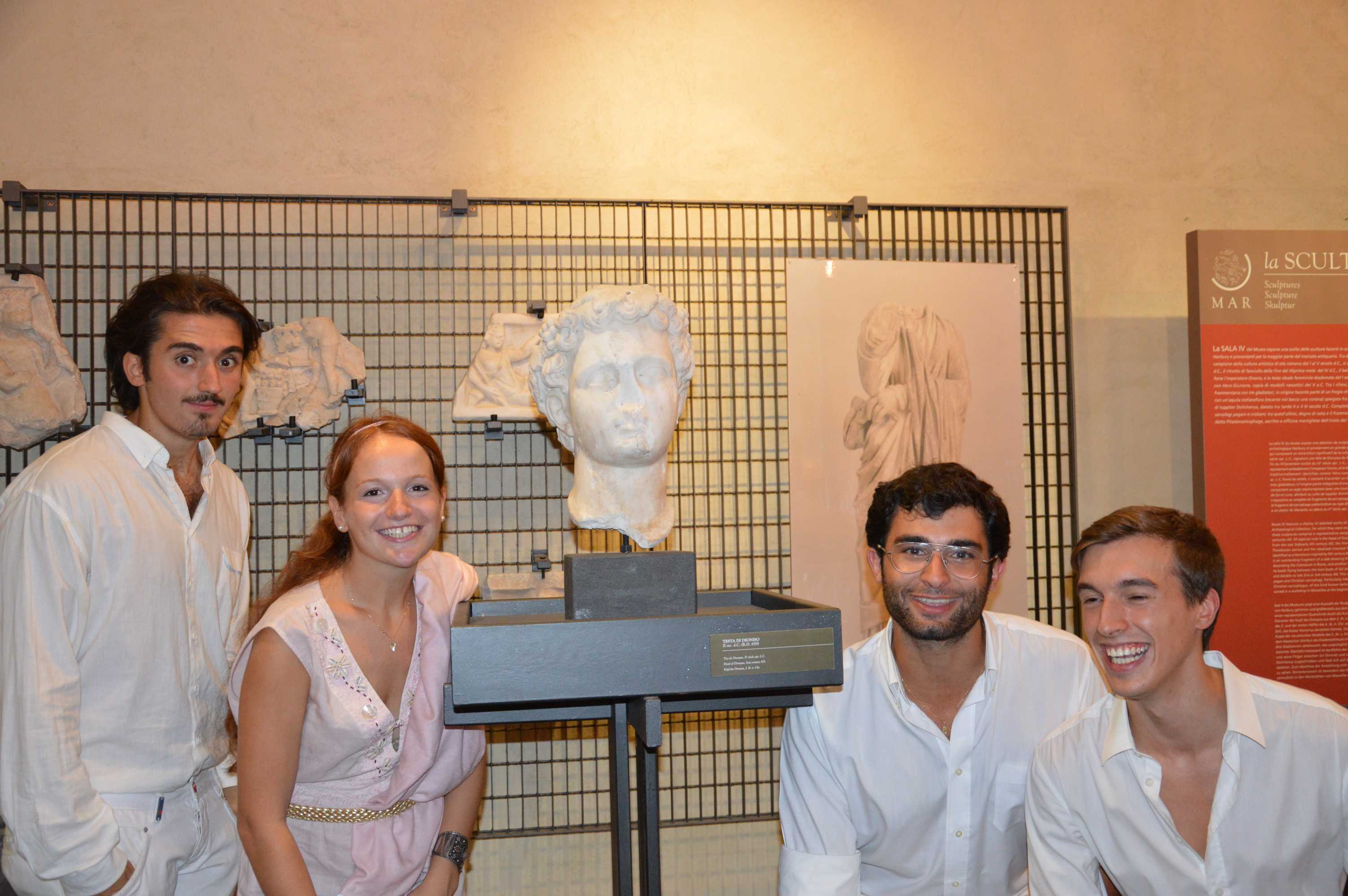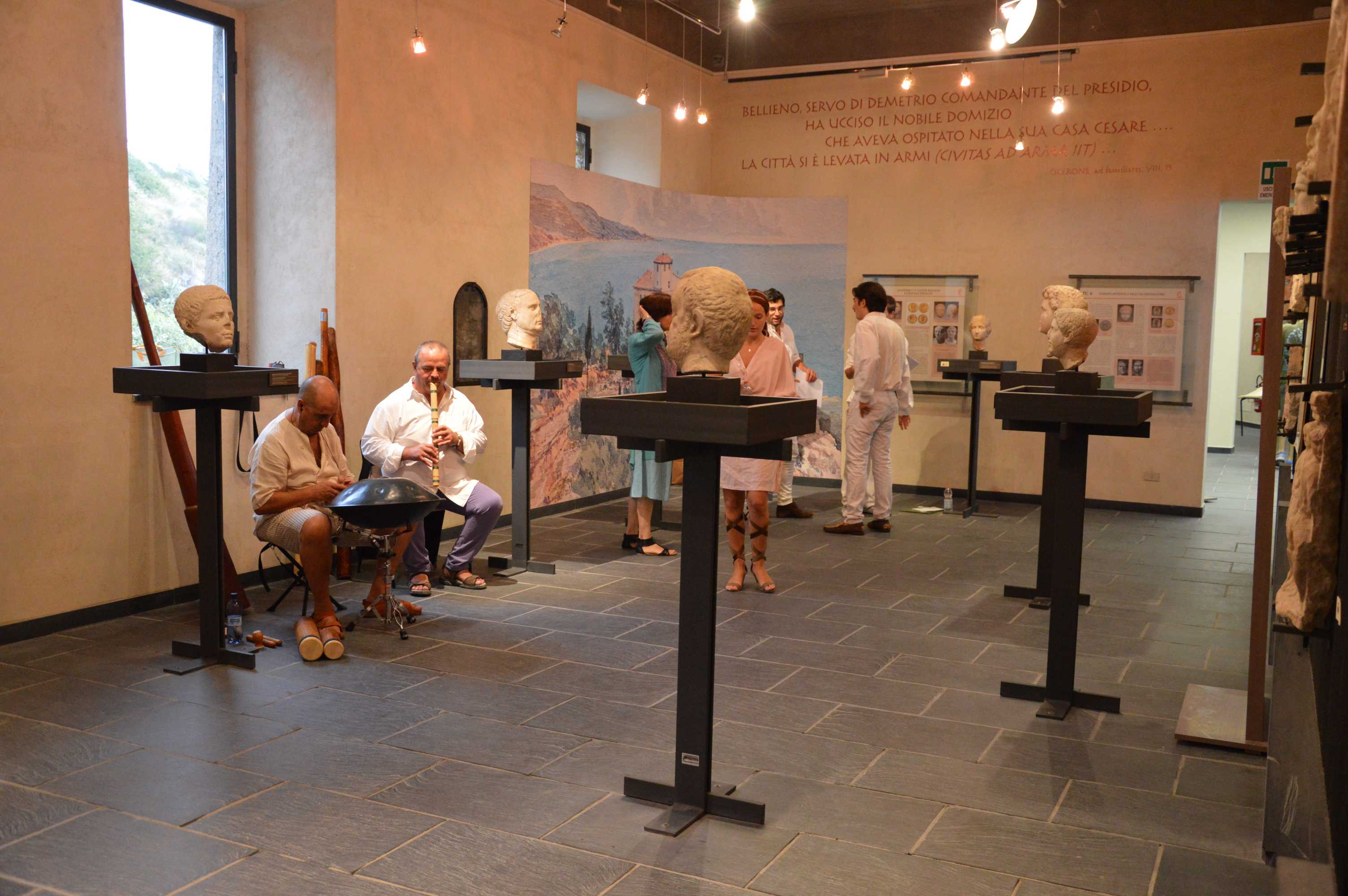 Assai apprezzato da un pubblico attento ed esigente il recital Echi d’Augusto, curato da Lilia De Apollonia, con interpreti la “Compagnia dei Giovani Universitari Intemeli” e la “Compagnia del Reading e Drama”di Ventimiglia, con brani tratti dall’Eneide, Ovidio, Orazio, Properzio, che si è svolto alle 18.00 nel lapidario del museo, con replica alle 19.00.