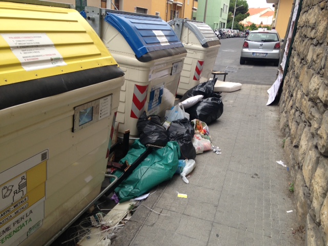 Inoltre, lungo il marciapiede i sacchetti della spazzatura sono abbandonati e rendono impervio il passaggio. Le immagini, fornite da un lettore, parlano chiaro e raccontano una situazione, quella dei rifiuti, che ancora non è completamente risolta in città.