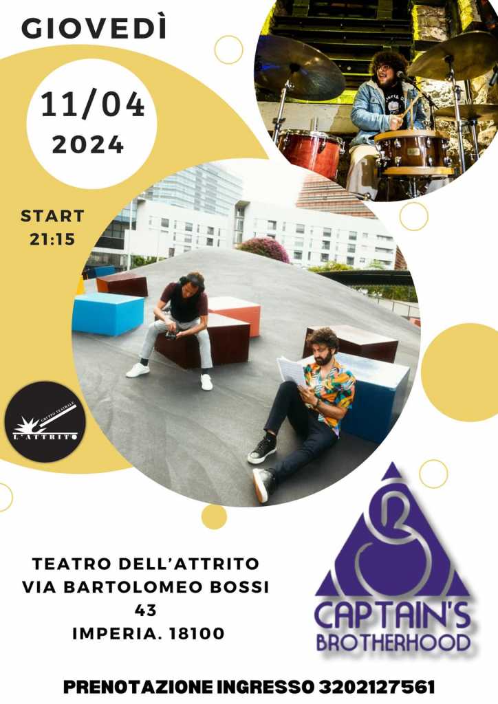 Giovedì 11 aprile, dalle ore 21.15, presso il Teatro dell’Attrito di Imperia, appuntamento con Captain’s Brotherhood. È un progetto musicale nato a Barcellona dall’incontro tra il bassista Hernàn Fridman e il chitarrista Lorenzo Spinozzi con la collaborazione del batterista sanremese Luigi Arieta .