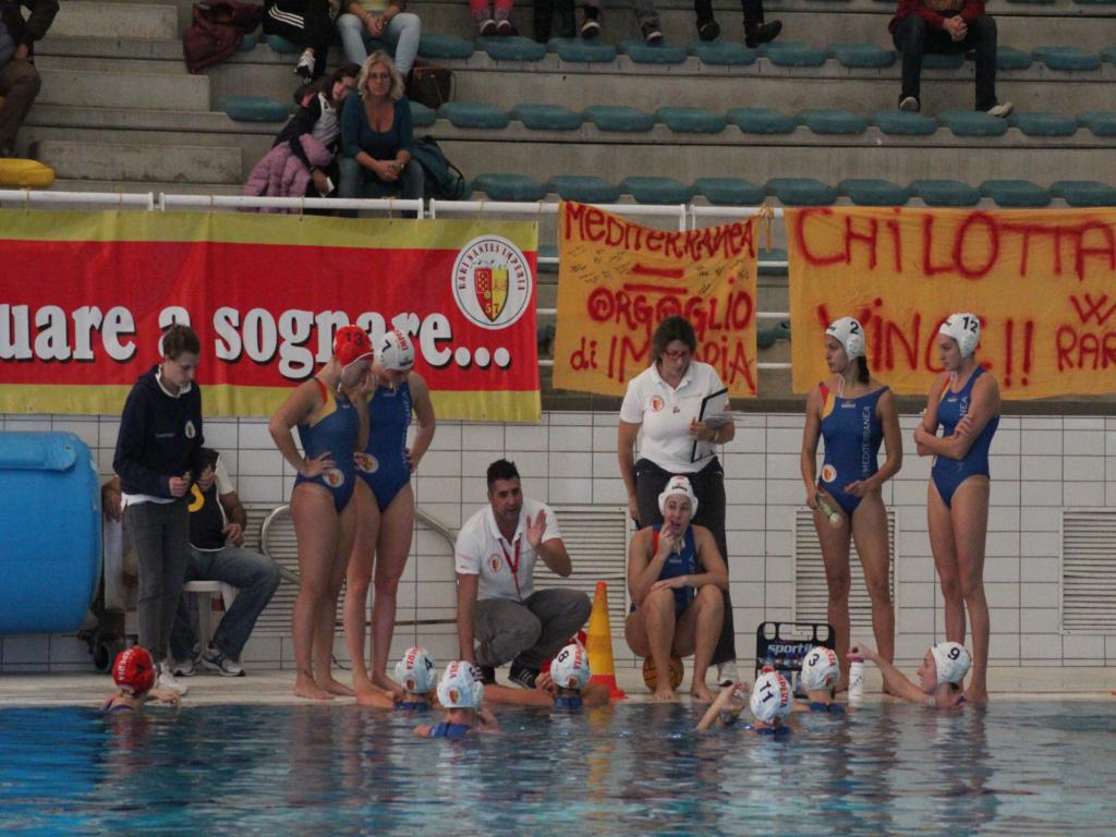 Dopo la sconfitta contro il Rapallo la Mediterranea Imperia torna a vincere e lo fa convincendo. Alla piscina Felice Cascione il tabellone al fischio finale segna 16 a 6 per le ragazze del mister Marco Capanna. Le siciliane del Blue Team non sono mai riuscite ad intimorire Emmolo e compagne che già dal primo tempo hanno dettato i tempi del match. Grande prestazione anche della numero uno delle giallo rosse che più volte è intervenuta provvidenzialmente tra i pali.