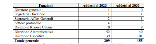 Per ridurre l’organico a 155 unità sono previste svariate misure, illustrate nella relazione:
