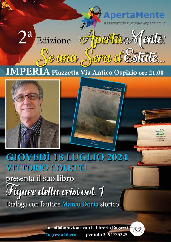 Giovedì 18 Luglio 2024 alle ore 21 presso la Piazzetta Via Antico Ospizio Imperia, Vittorio Coletti presenta il suo libro: “LE FIGURE DELLA CRISI vol. 1 (Il Canneto Editore)“. Protagonisti tormentati del saggio di Vittorio Coletti sono “il prete” e “il politico”.