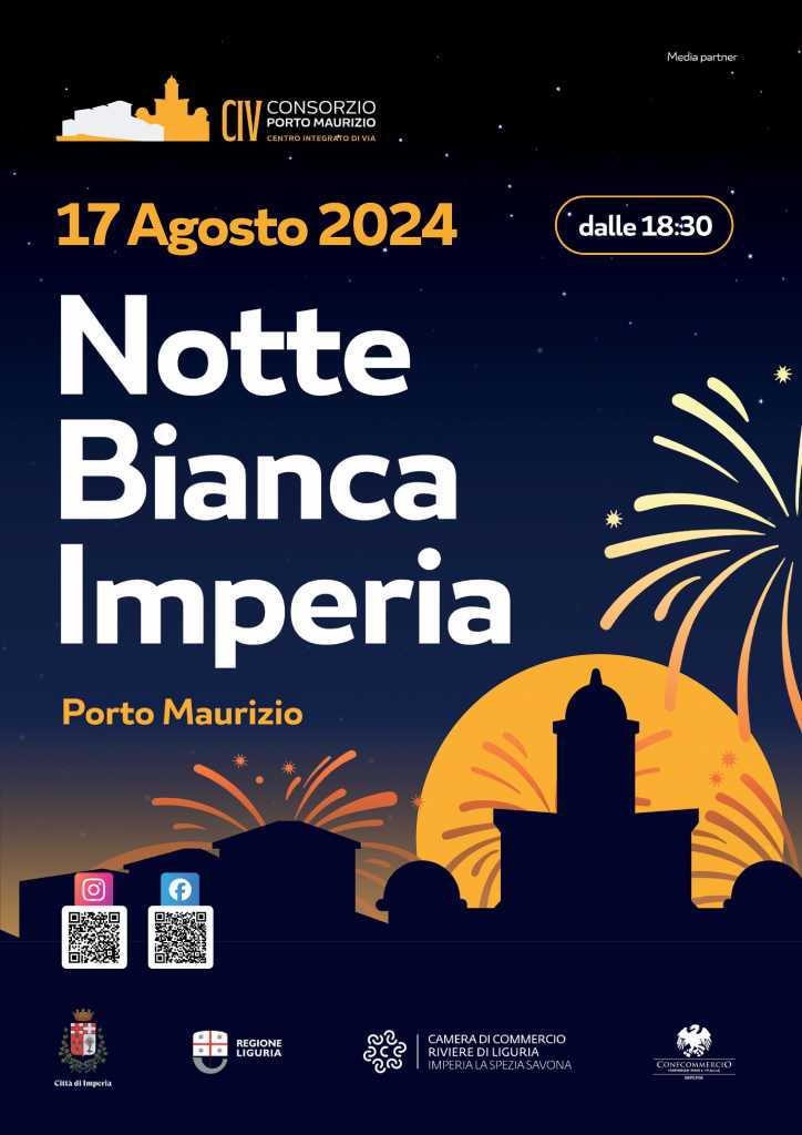 La Notte Bianca di Porto Maurizio è organizzata dal CIV di Porto Maurizio, con il Presidente Riccardo Caratto, con il supporto dell’Amministrazione comunale di Imperia, di Regione Liguria e Confcommercio.