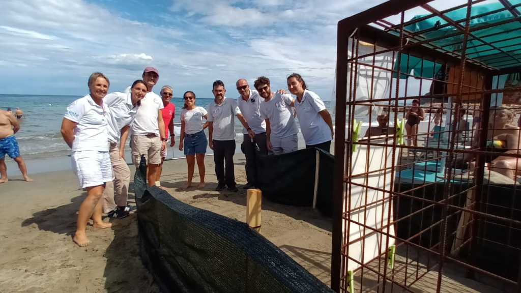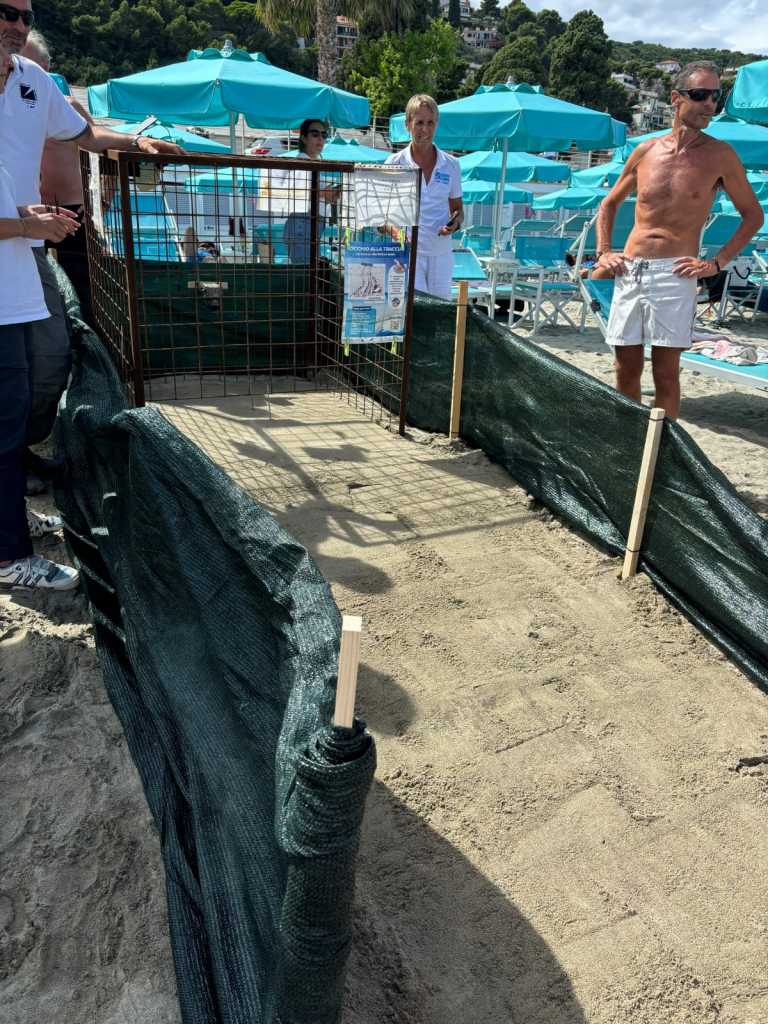 In previsione dell’ipotesi di schiusa, è iniziata la fase preparatoria attraverso la predisposizione di un corridoio ombreggiato dal nido al mare per proteggere maggiormente gli eventuali piccoli nella breve strada da compiere fino all’acqua, l’installazione di una telecamera di controllo e, grazie alla collaborazione dell’Associazione Delfini del Ponente e ai volontari formati, è iniziato il monitoraggio h24 del nido. In vista della schiusa, è stata spianata la superficie sabbiosa dell’area del nido in modo da poter individuare più facilmente il cono di schiusa che normalmente si forma poco prima dell’uscita dei primi esemplari.
