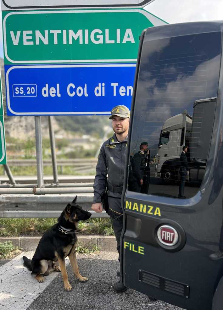Nell’ambito delle citate attività, nella notte dell’8 agosto, i finanzieri della locale Compagnia di Ventimiglia, coadiuvati dalle unità cinofile, hanno fermato un autoveicolo modello Renault Twingo con a bordo 2 cittadini francesi che stavano transitando in ingresso presso il confine autostradale di Ventimiglia.