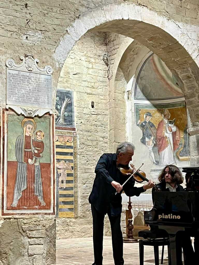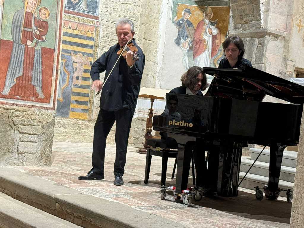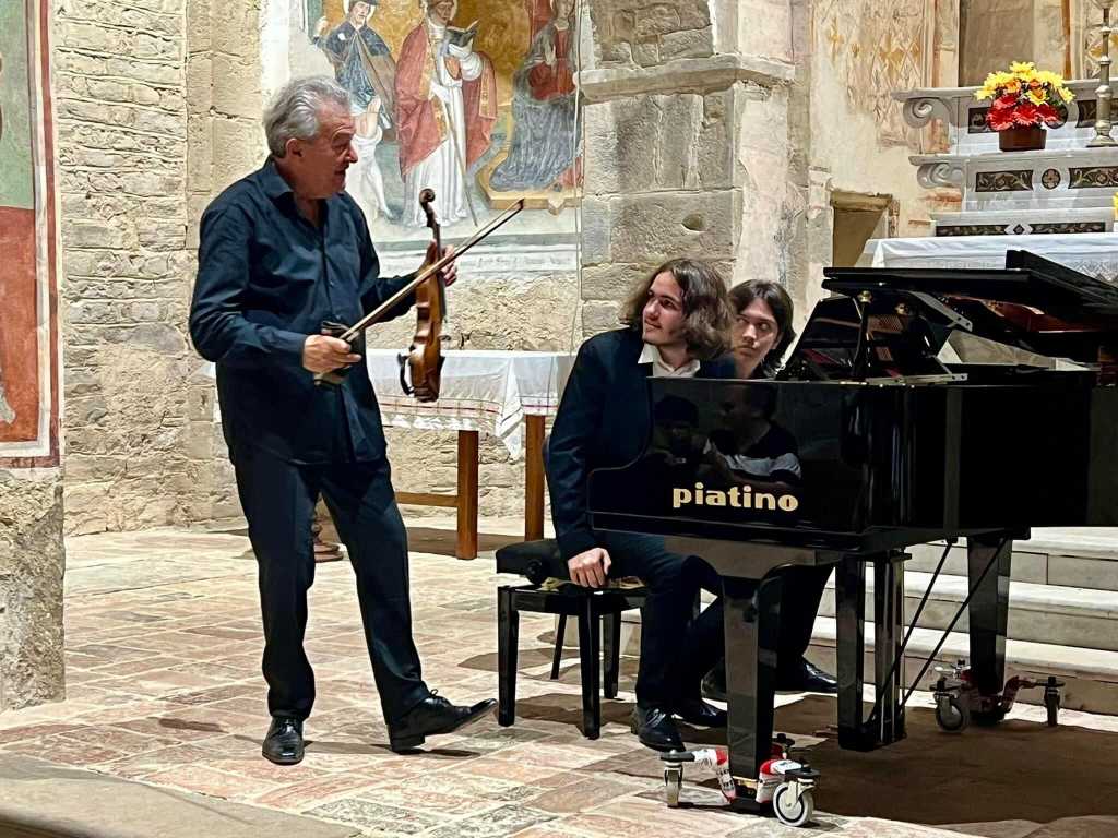 La masterclass, organizzata per gli allievi della classe di violino del prof. Ragazzi, ha un respiro cosmopolita per la partecipazione di musicisti provenienti da varie parti d’Italia e dall’estero ed e’ proprio in questo clima di apertura e collaborazione che la musica sempre riesce a creare che le idee prendono vita e allora puo’ succedere che un grande violinista incontri un giovane pianista. Il concerto è stato quello conclusivo della rassegna “ Suoni, essenze e colori dalla collina dell’antica pieve”, eventi organizzati a corollario dei corsi di perfezionamento musicale che si tengono durante il mese di agosto nel suggestivo borgo e che sono l’appuntamento tanto atteso non solo per allievi della scuola di musica sanremese, ma per tanti studenti che hanno la possibilita’ di seguire lezioni intensive con prestigiosi docenti.