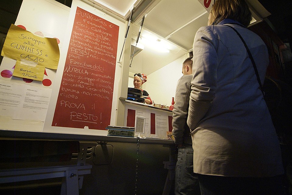A bordo del mio camioncino preparo i “PUNKcakes”, una mia rielaborazione dei pancakes americani, li preparo con diverse farine, di ceci, di farina di frumento, di castagne e di canapa, dalle eccezionali proprietà nutritive, li farcisco dolci o salati, con salumi, formaggi, verdure, salse, creme e marmellate, a seconda della stagione e du quello che mi suggerisce la fantasia