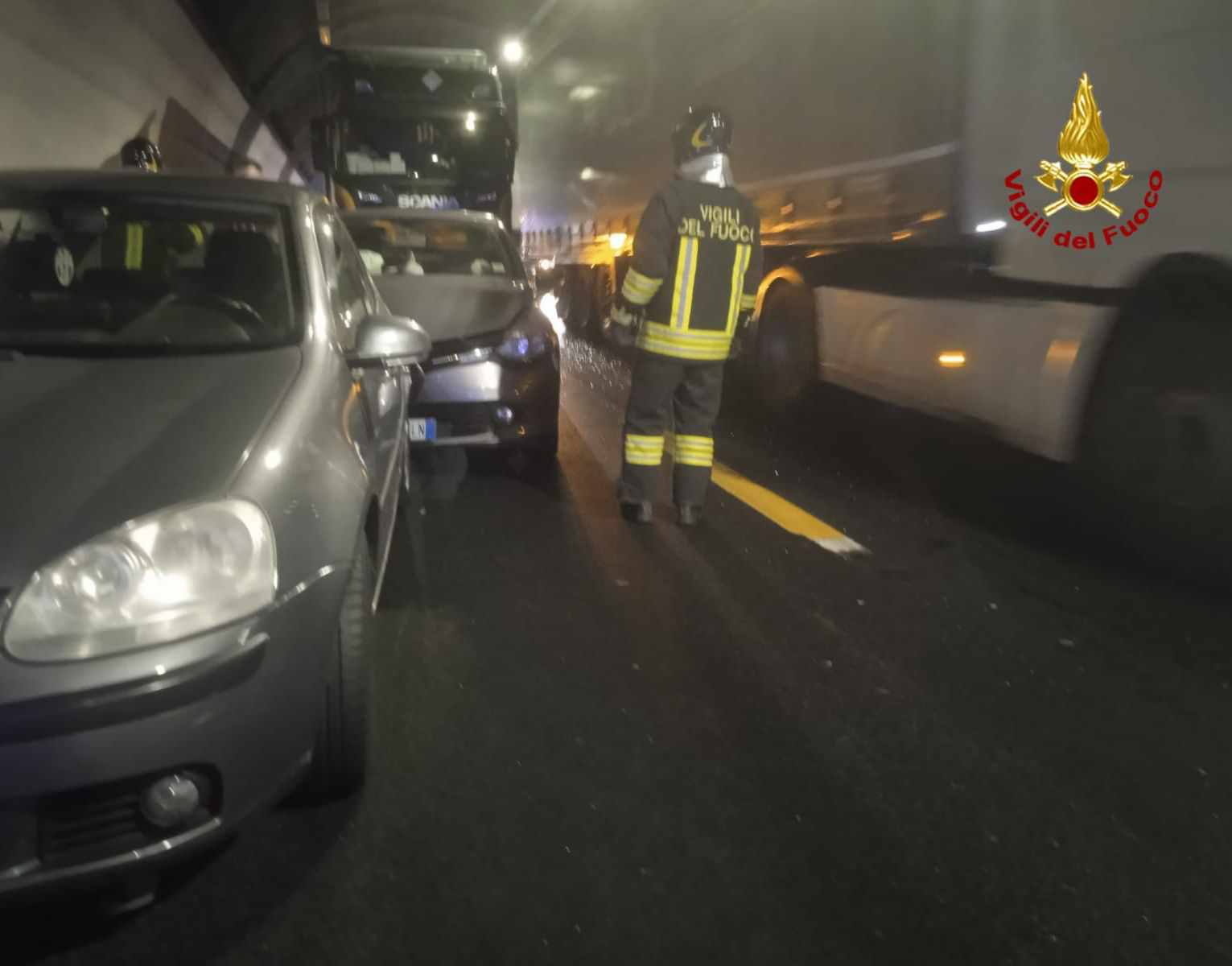Il primo intervento è avvenuto al km 50 dell’autostrada A10 Savona-Ventimiglia, all’altezza del casello di Spotorno, all’interno di una galleria. Nell’incidente sono rimasti coinvolti due veicoli leggeri e un mezzo pesante. I Vigili del Fuoco, intervenuti, hanno provveduto a mettere in sicurezza l’area e i mezzi coinvolti, collaborando con il personale sanitario per il soccorso a una persona rimasta ferita. Le operazioni di soccorso si sono svolte in condizioni complesse a causa della scarsa visibilità e dello spazio limitato in galleria.