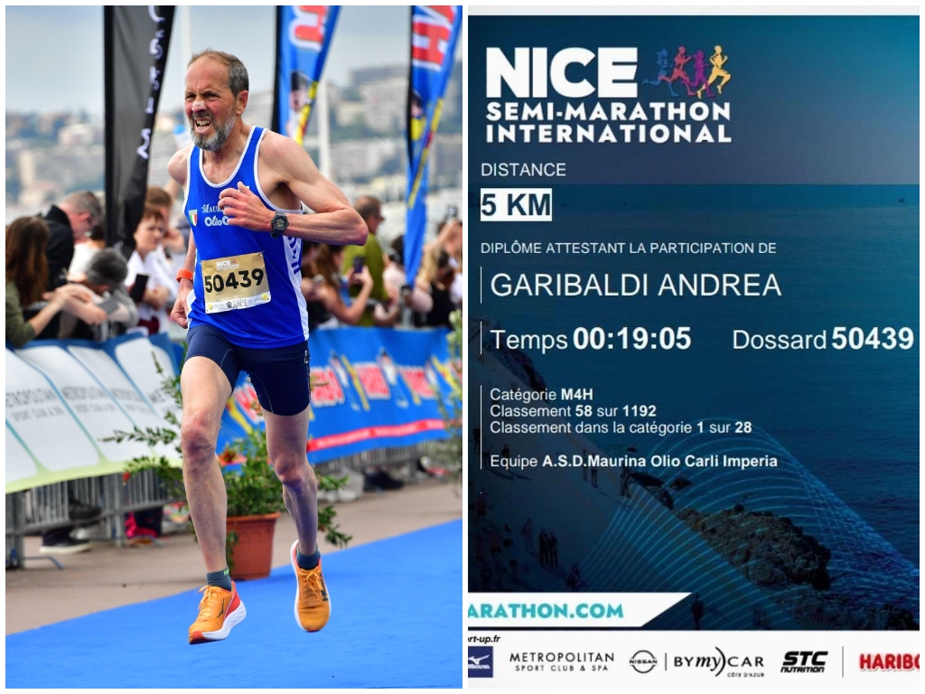 Vittoria di categoria (55-59 anni) per Andrea Garibaldi nella 5 km di Nizza, disputatasi domenica 27 aprile sulla celebre Promenade des Anglais.