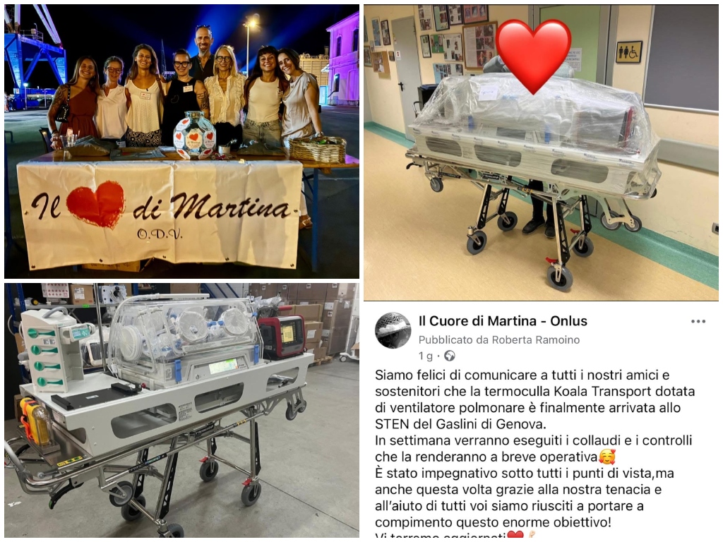 L’associazione imperiese “Il Cuore di Martina” ha coronato un importante obiettivo: grazie alle donazioni raccolte durante il 2024, è stata acquistata una “termoculla” da trasporto completa di monitor e ventilatore polmonare, già consegnata allo STEN del Gaslini di Genova.