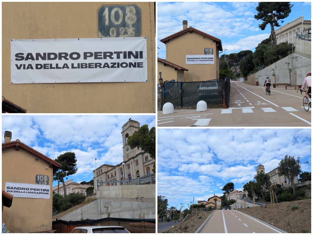 Uno striscione dal forte significato simbolico è apparso sull’ex casello ferroviario lungo il nuovo tratto di ciclabile di Imperia, recentemente inaugurato. La scritta recita: “Sandro Pertini, via della Liberazione“.