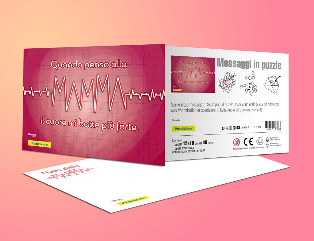 Le cartoline, in formato standard e puzzle dal titolo “Quando penso alla mamma il cuore mi batte più forte”, possono essere acquistate anche online sul sito poste.it e negli Spazio Filatelia, fino al 12 maggio, sarà anche possibile chiedere l’annullo speciale.