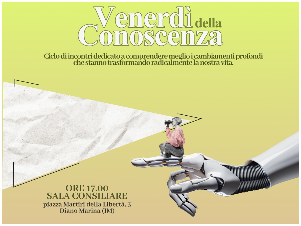 Domani, venerdì 23 maggio, alle ore 17:00, presso la Sala Consiliare del Comune di Diano Marina (piazza Martiri della Libertà 3), si terrà l’ultimo appuntamento del terzo ciclo de I Venerdì della Conoscenza, il progetto culturale promosso dall’Amministrazione Comunale con il contributo e il patrocinio di Regione Liguria.
