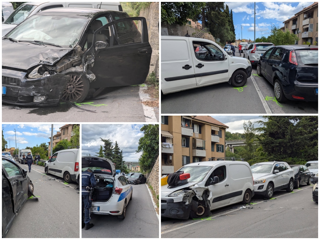 Diversi mezzi sono rimasti coinvolti in un incidente avvenuto in via Artallo intorno alle 16 di oggi pomeriggio. Secondo quanto si apprende all’origine del sinistro ci sarebbe il tamponamento di un furgone da parte di un’auto, che tentando il sorpasso avrebbe tamponato l’altro mezzo, sbattendo anche contro alcuni veicoli in sosta a bordo strada.
