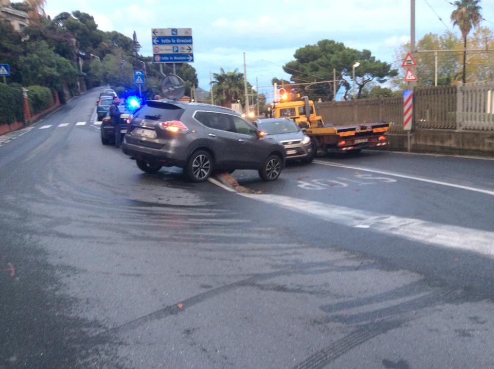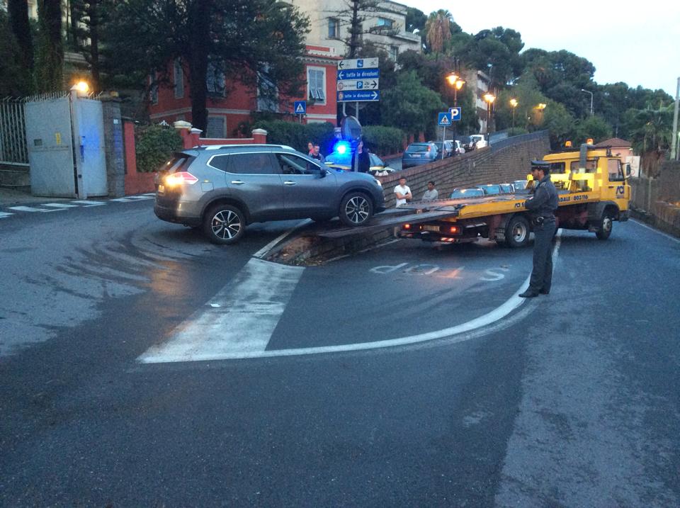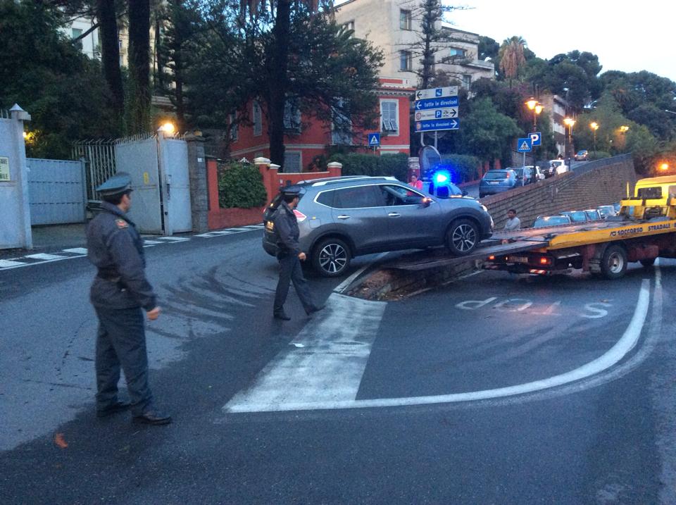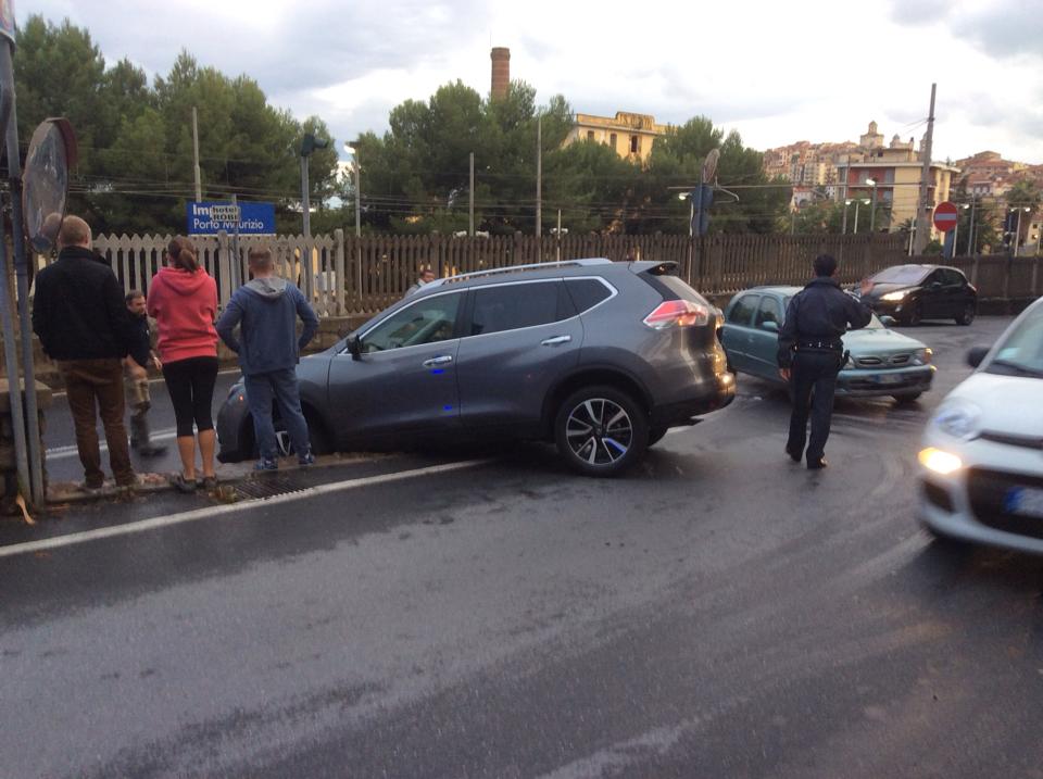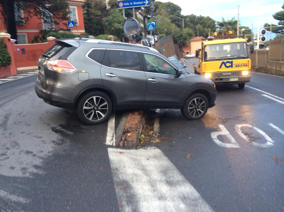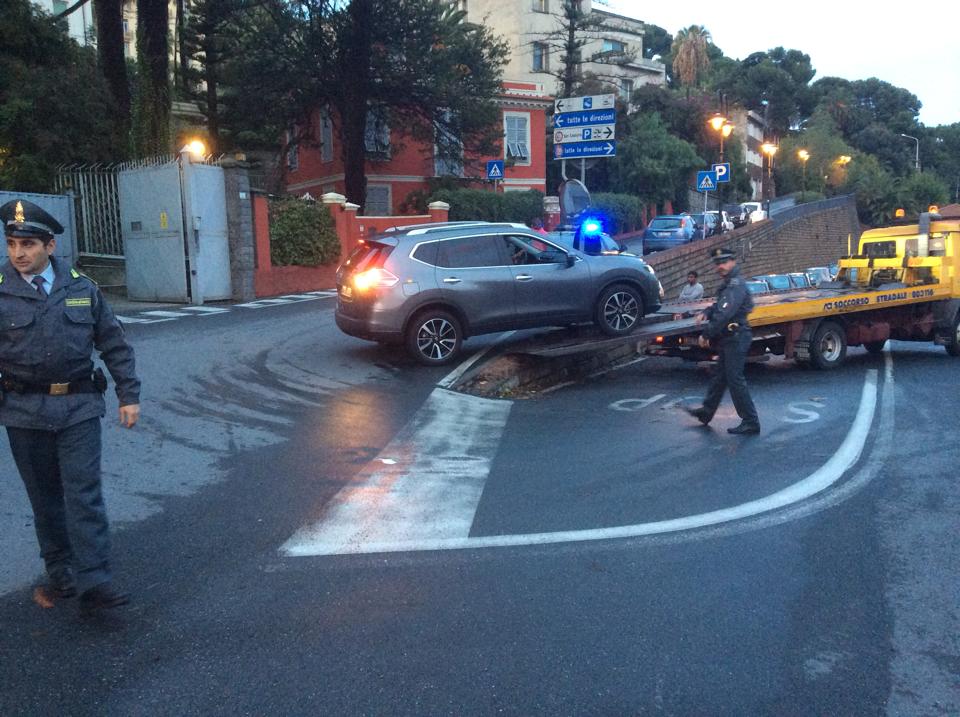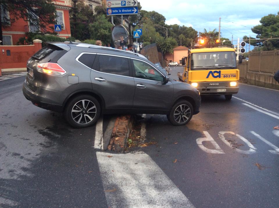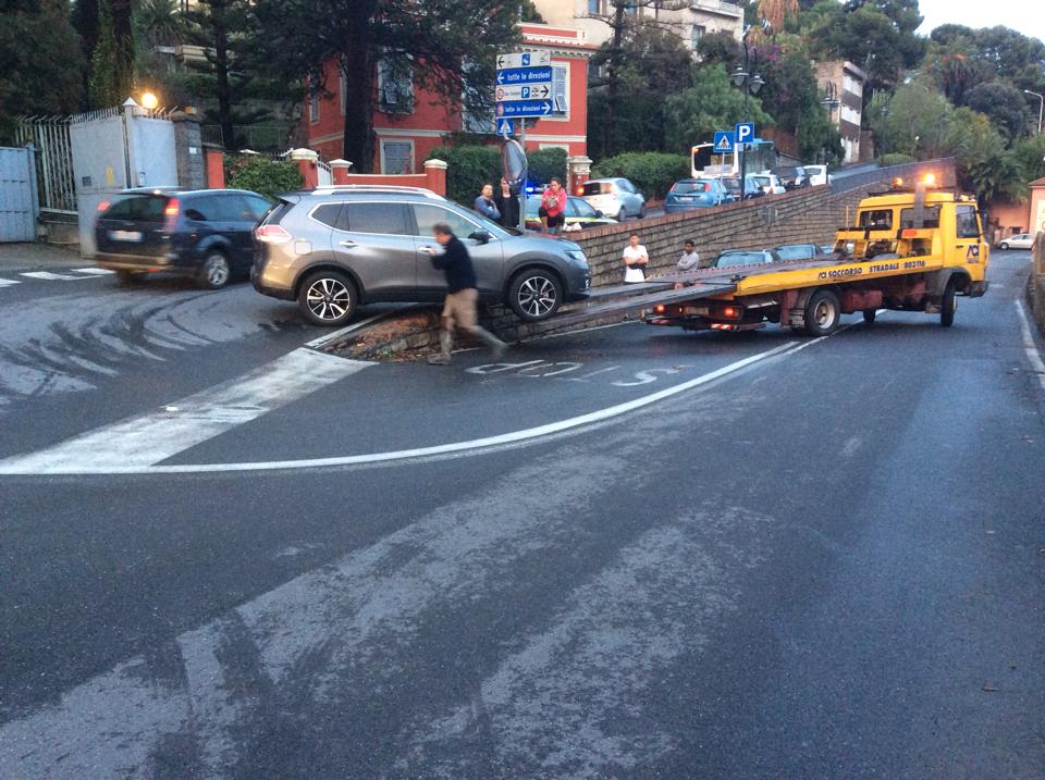 Sul posto è intervenuto, oltre a una pattuglia della Guardia di Finanza per regolare il traffico, un carrottrezzi che, non senza difficoltà, dopo alcune manovre, è riuscito a rimettere su strada il Suv.