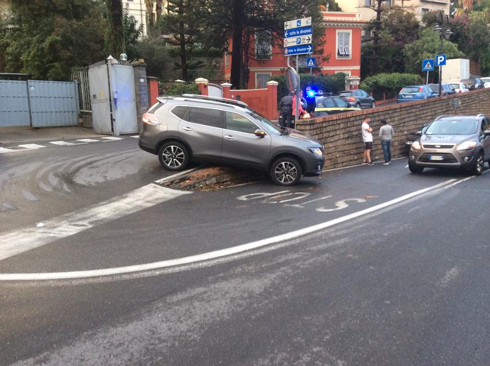IL SUV IN BILICO SUL MURETTO