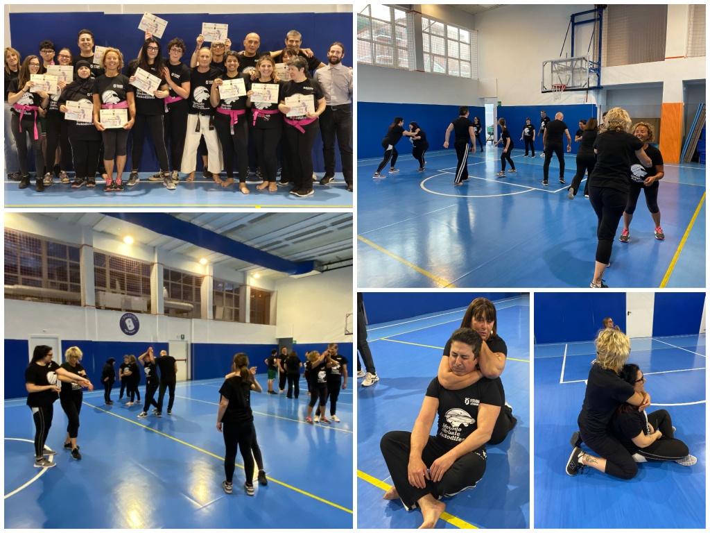 Durante la serata conclusiva sono state consegnate le cinture rosa e i diplomi di frequenza, simboli tangibili di un percorso che è andato ben oltre la semplice tecnica. “La vera difesa personale nasce dalla fiducia in sé stesse – ha ricordato il Maestro Ilario Simonetta – e queste donne hanno dimostrato di avere coraggio, volontà e cuore.”