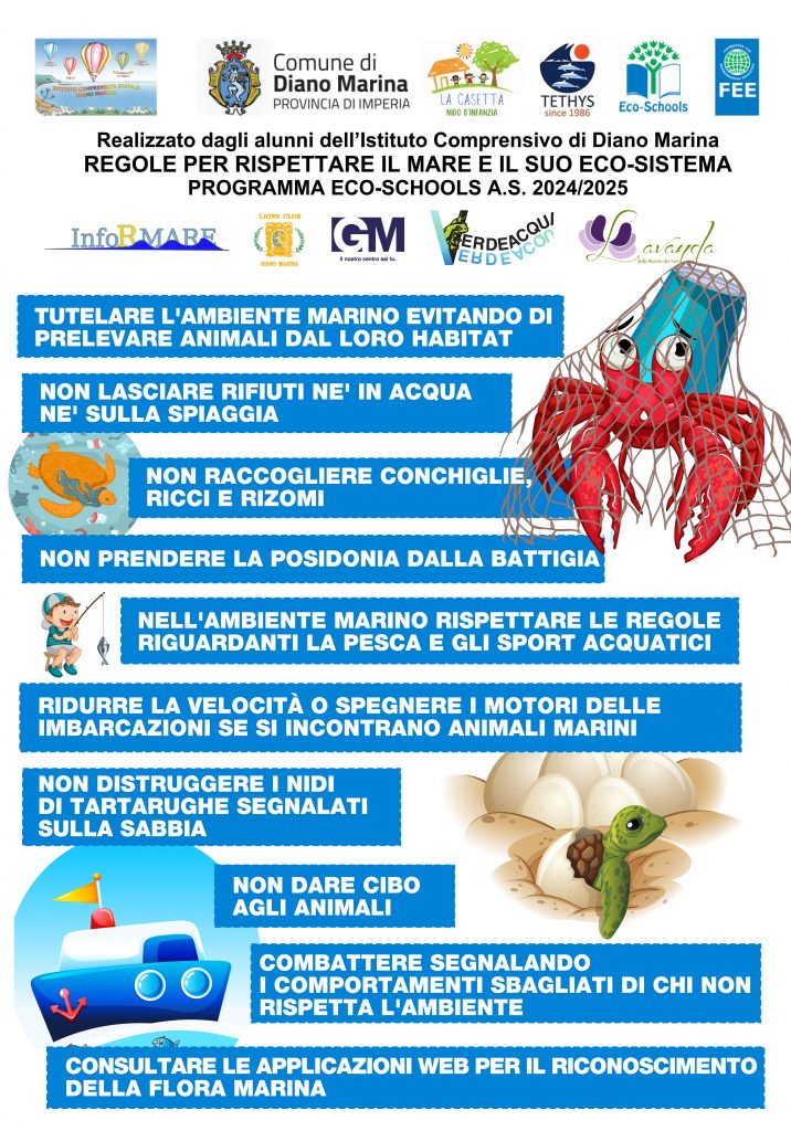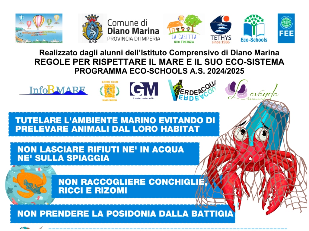 Durante l’anno scolastico, i bambini hanno anche elaborato un “Eco-Decalogo” dedicato alla tutela dell’ambiente marino, che verrà diffuso alla cittadinanza tramite manifesti e 300 volantini distribuiti sul territorio. Le regole, ideate e condivise in classe, rappresentano l’impegno concreto dei più piccoli verso la salvaguardia del mare. Tra i principi fondamentali, troviamo il rispetto degli animali e dei loro habitat, la lotta contro l’abbandono dei rifiuti, la protezione delle tartarughe marine e l’uso consapevole delle imbarcazioni. Viene inoltre incoraggiato l’utilizzo di applicazioni digitali per riconoscere la flora marina e la segnalazione dei comportamenti dannosi per l’ambiente.
