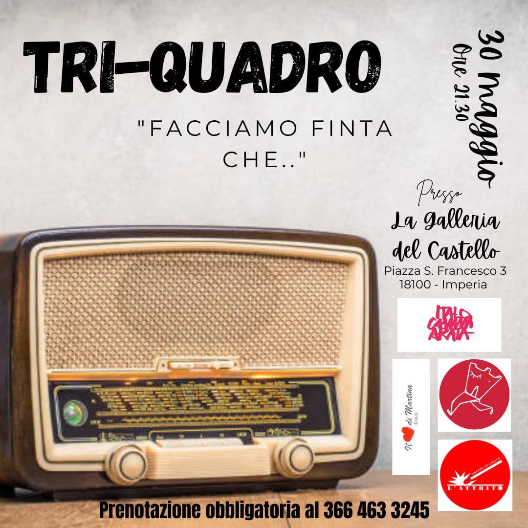 Venerdì 30 maggio, alle ore 21.30, il Teatro dell’Attrito sarà ospite della Galleria del Castello con la performance teatrale “TRI-QUADRO”, iniziativa a favore della OdV “Il Cuore di Martina”.